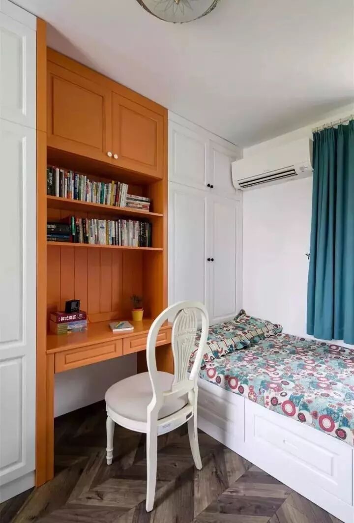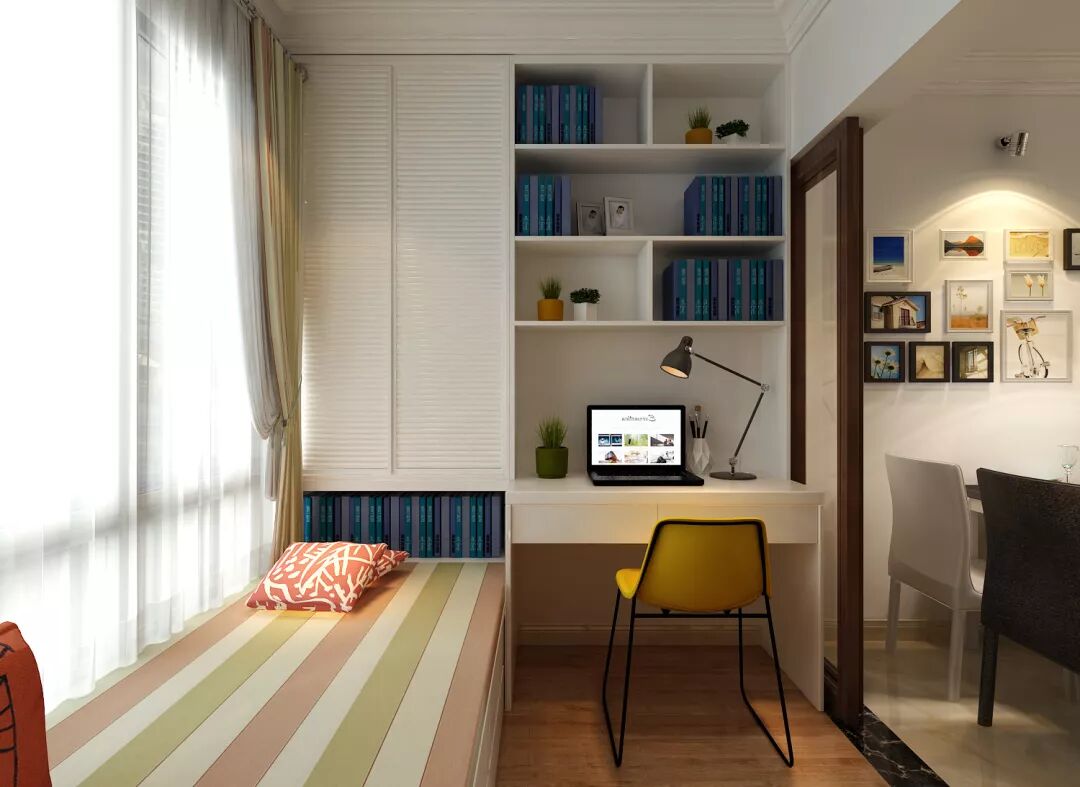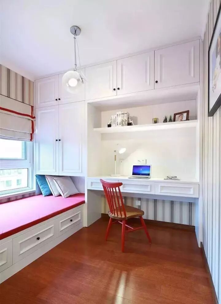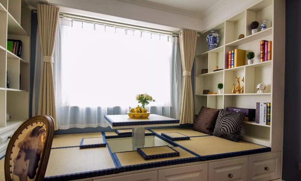 书桌和榻榻米结合,可实现办公休息一体化。如果再加上储物柜设计,那书房的收纳功能无疑超强。