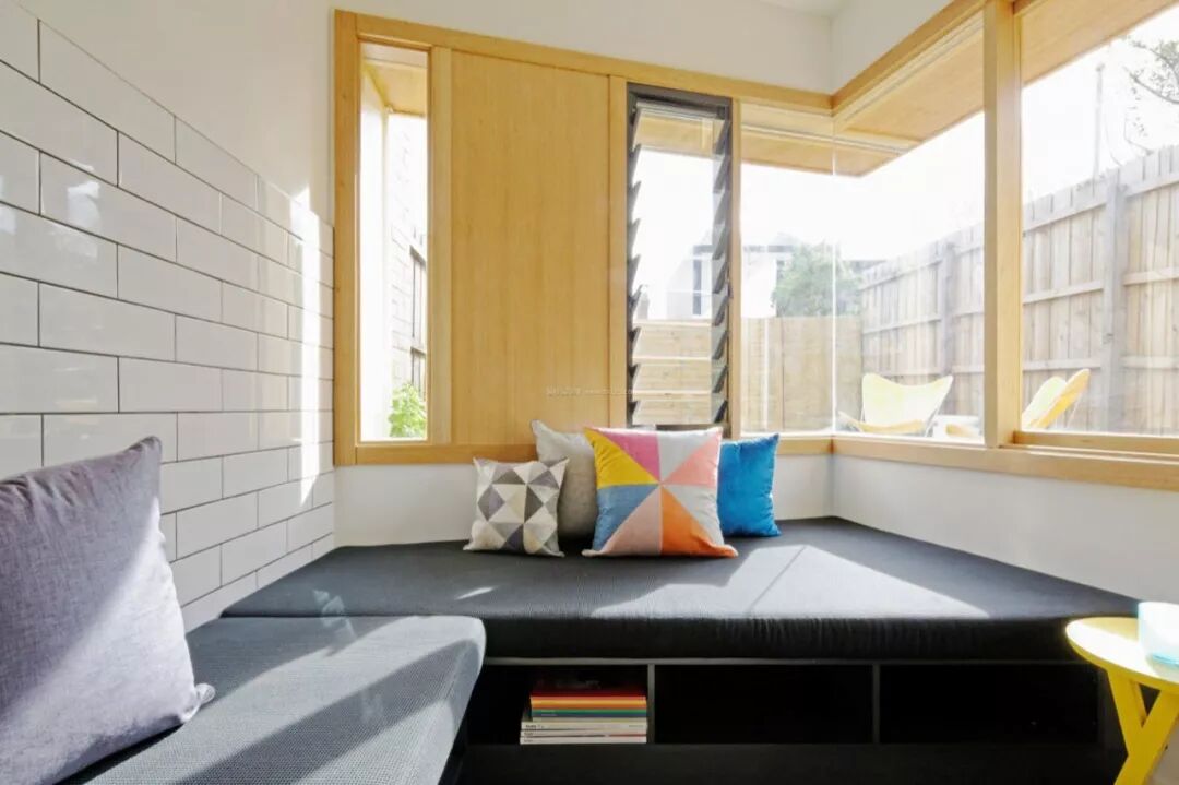 飘窗榻榻米的材质决定其使用寿命的长短、风格。飘窗榻榻米最好选择防水抗晒的材质,建议选择米色或浅啡色系的天然木材或人造木材。