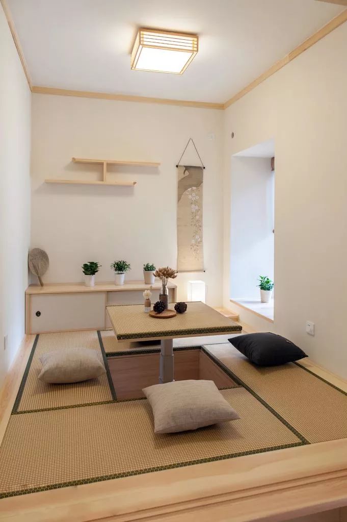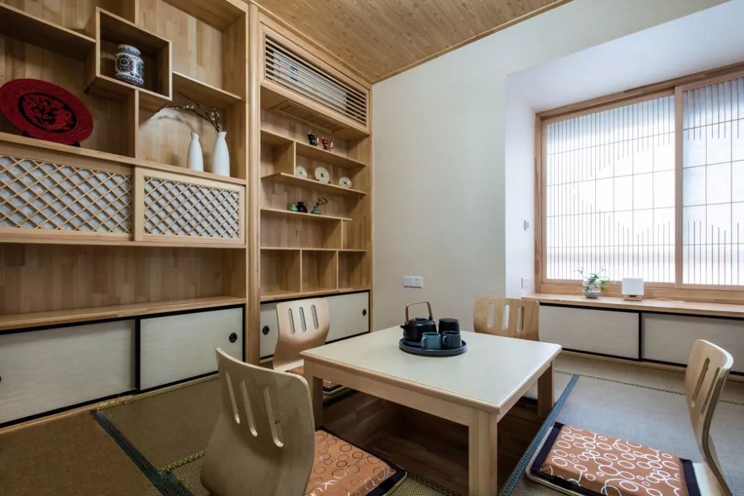 榻榻米还可以打造出一个休闲会客区,闲暇时分,约上三五好友在此喝茶聊天,也是一大享受。
