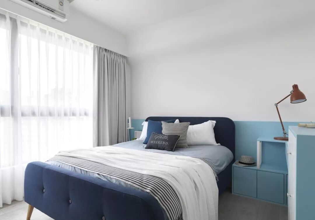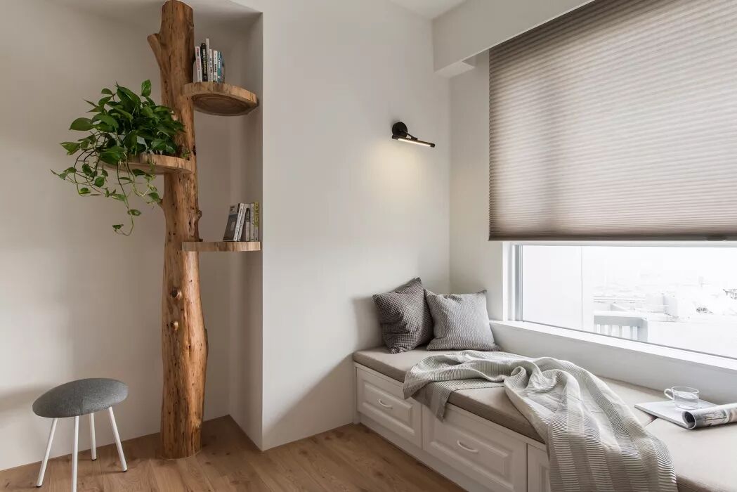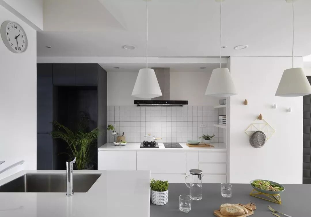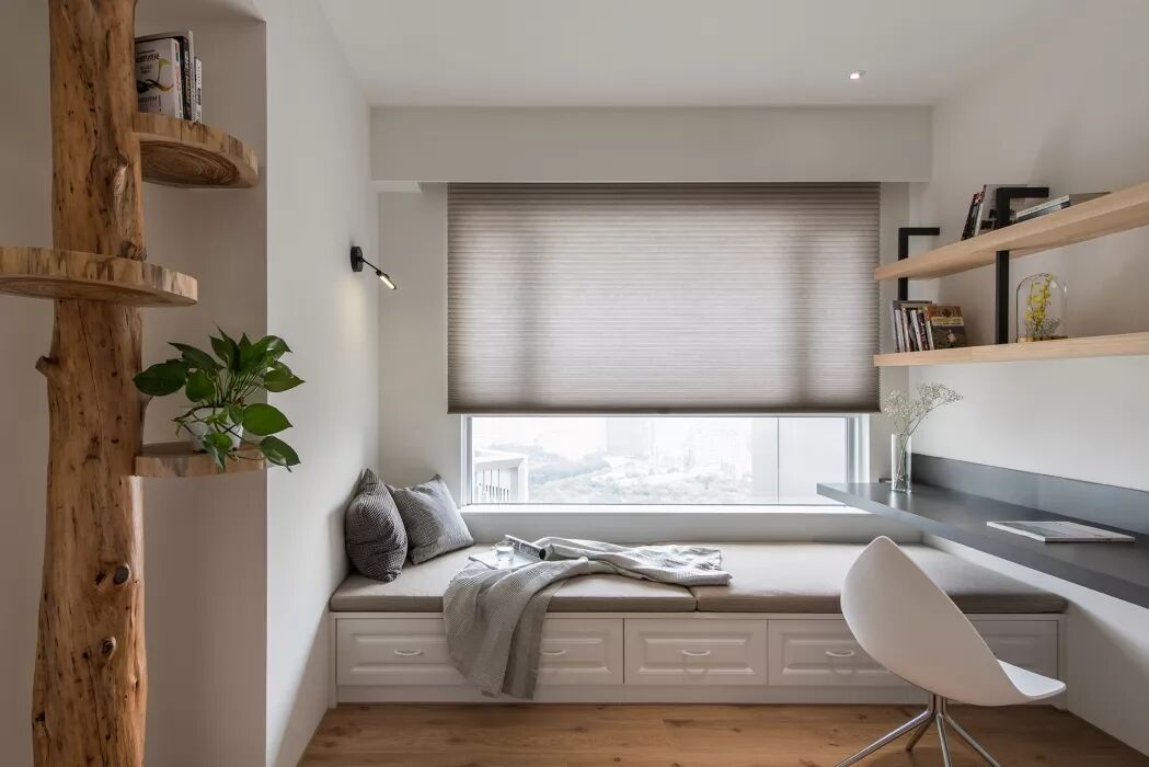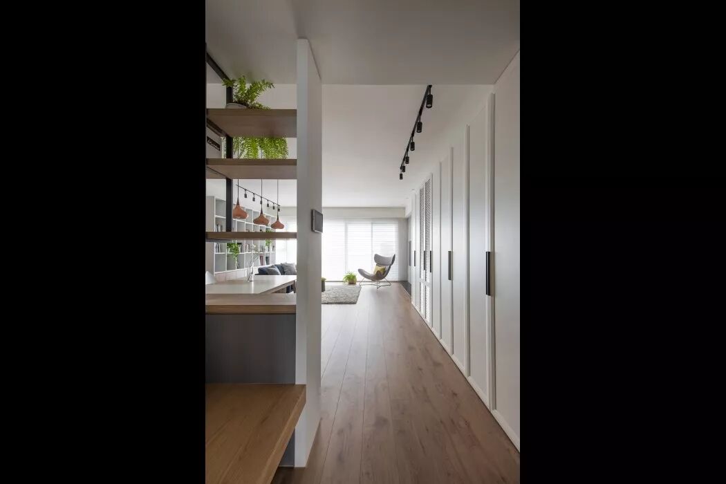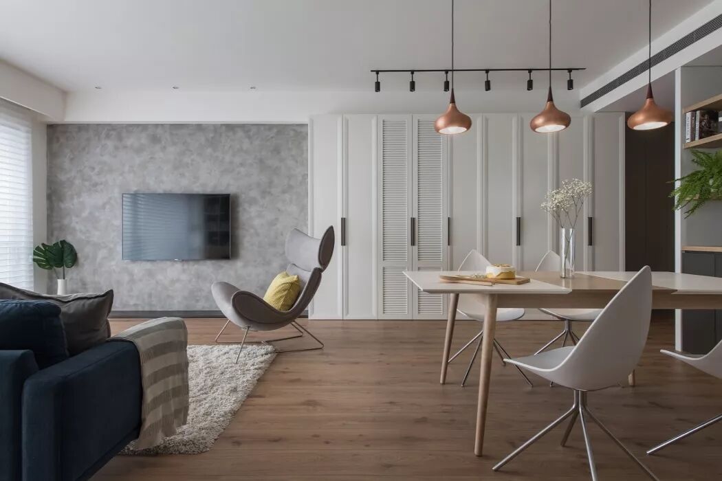 本案采用白色基调,结合木本色与少量深蓝色,加入点缀黄,空间顿时灵动起来。