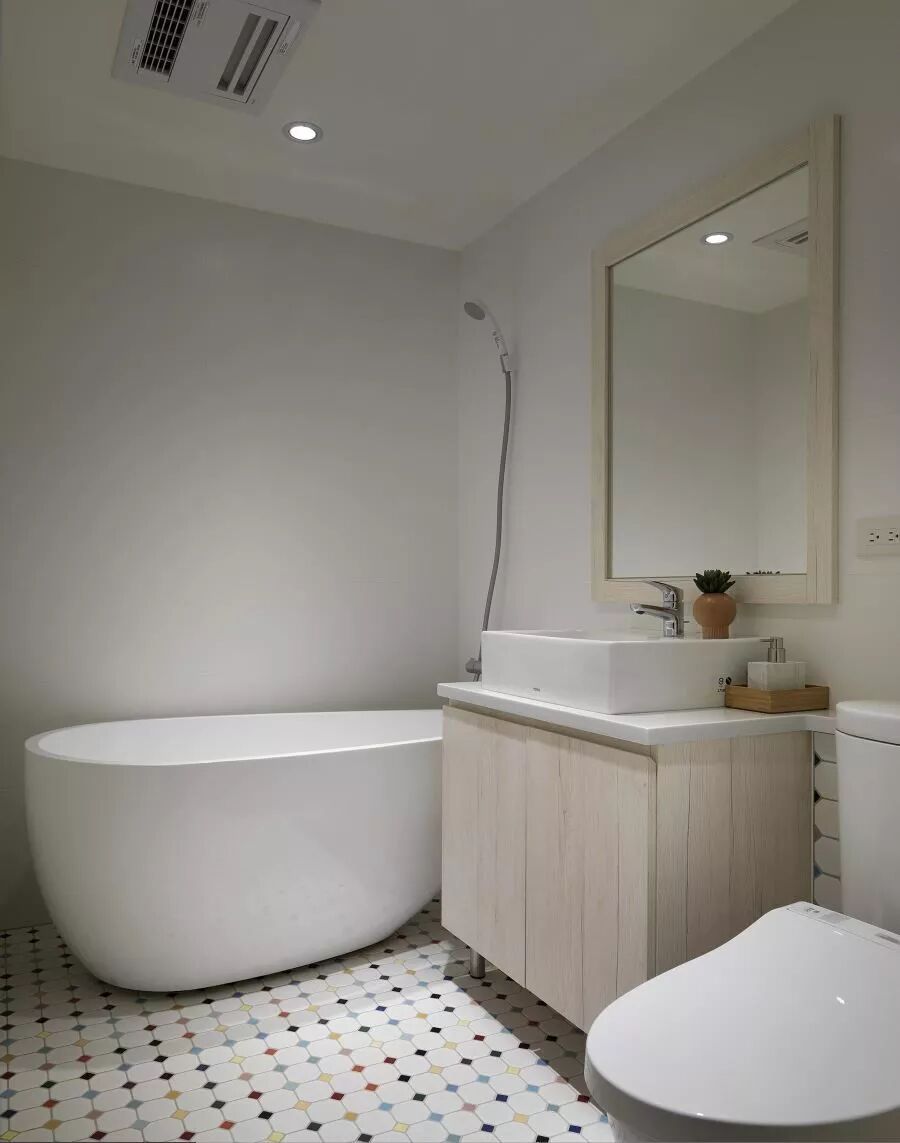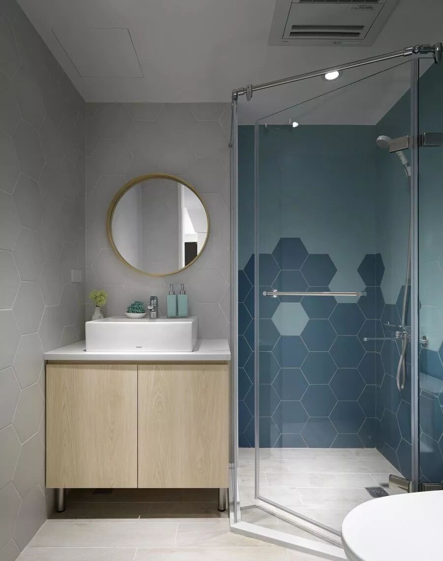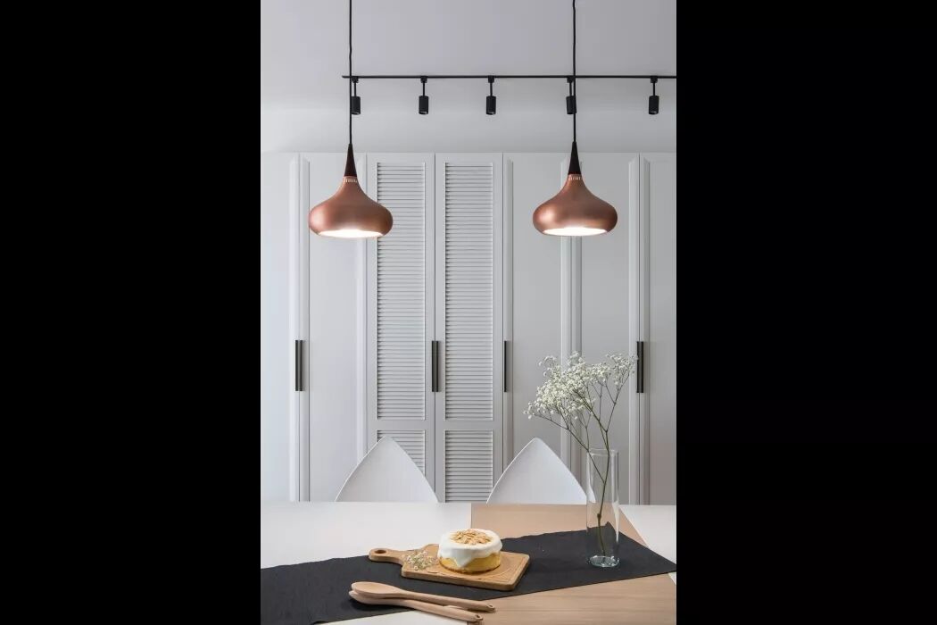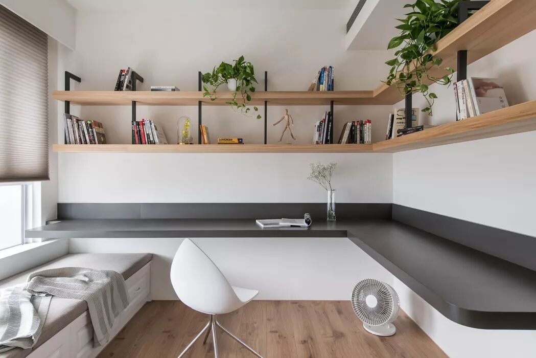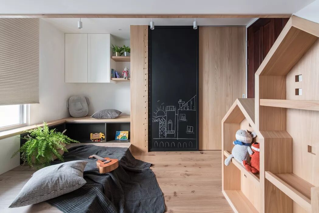本案采用白色基调,结合木本色与少量深蓝色,加入点缀黄,空间顿时灵动起来。