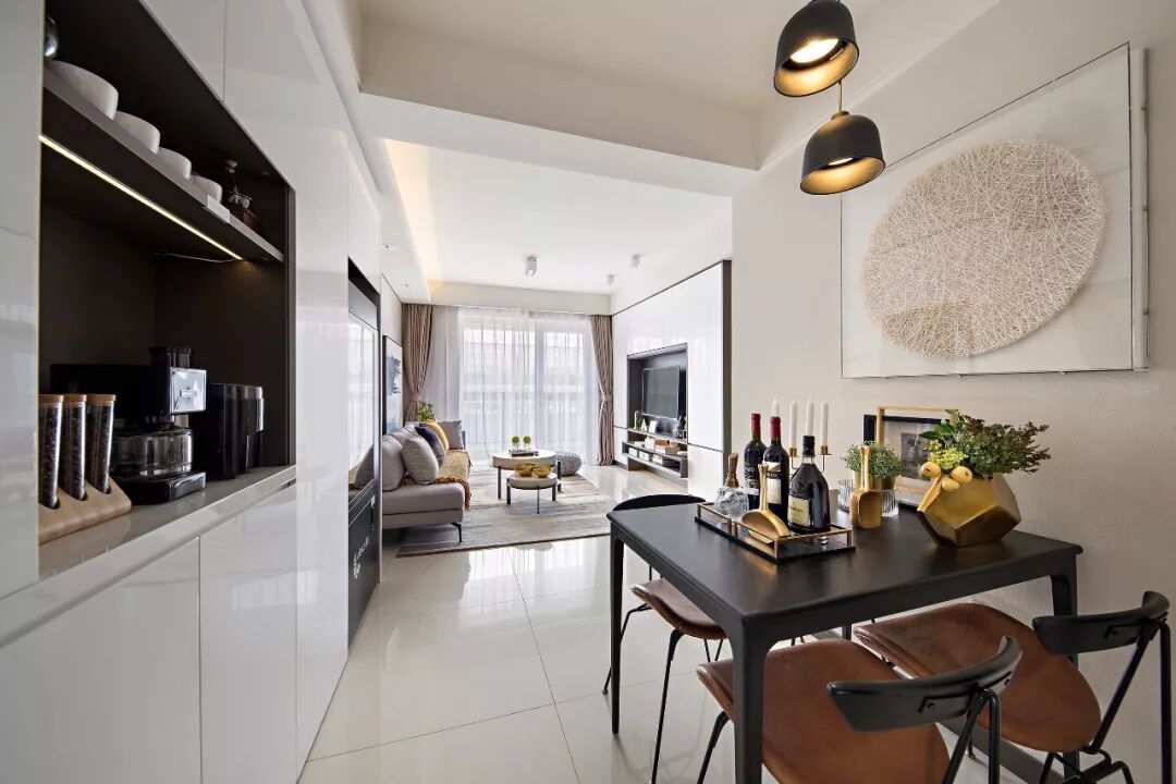 入门玄关柜功能:吧台收纳,鞋柜收纳,餐具收纳、酒柜收纳、衣物收纳。