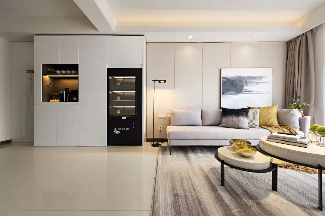 客厅电视墙,震撼的收纳体量,让堆积如山的杂物不复存在。墙柜集齐了客厅的娱乐功能和收纳功能!
