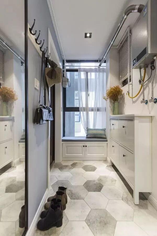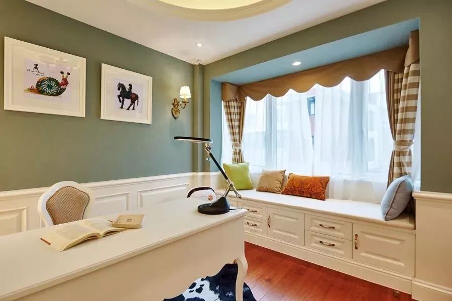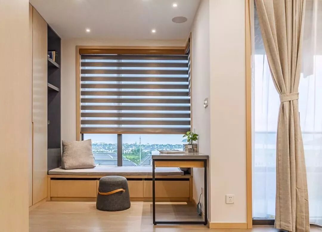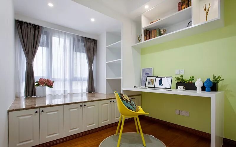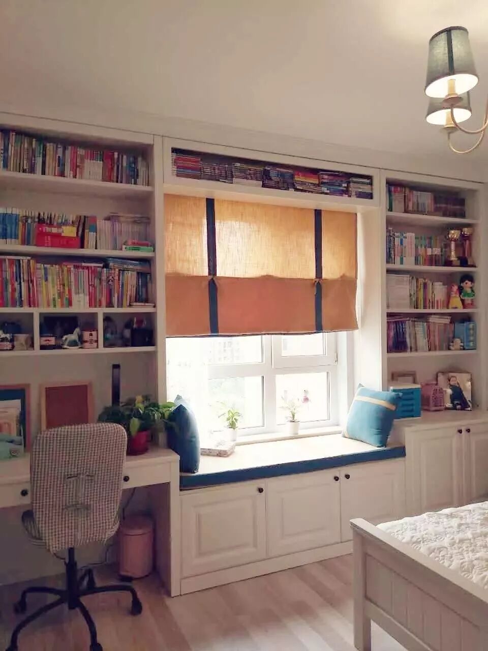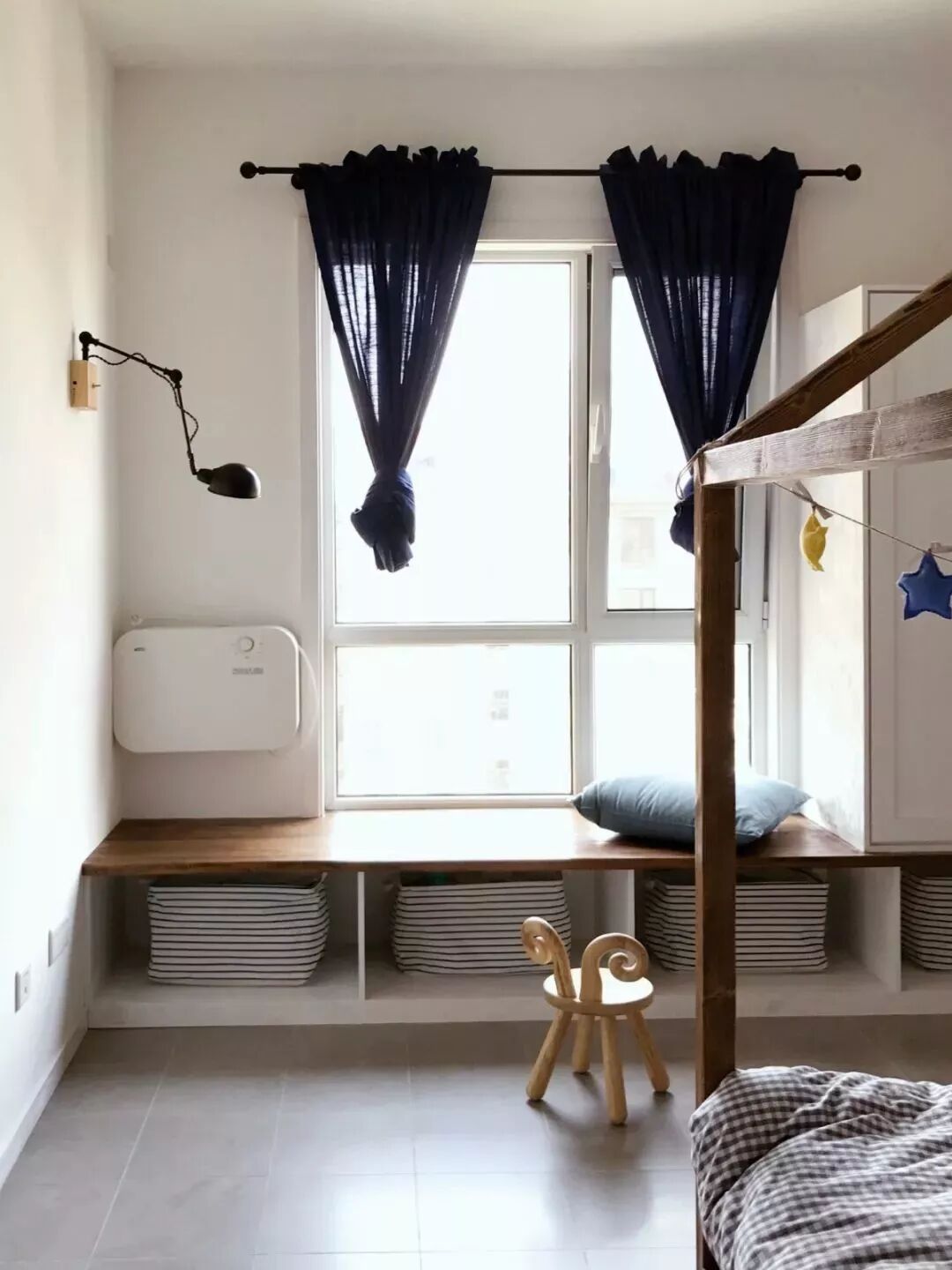 对于那些不能砸的飘窗,如果想要做收纳的话,那么就只能是在原有的飘窗基础加一层的收纳柜了,这样既不会挡住窗户,又能保障收纳实用性,也是不错的设计。