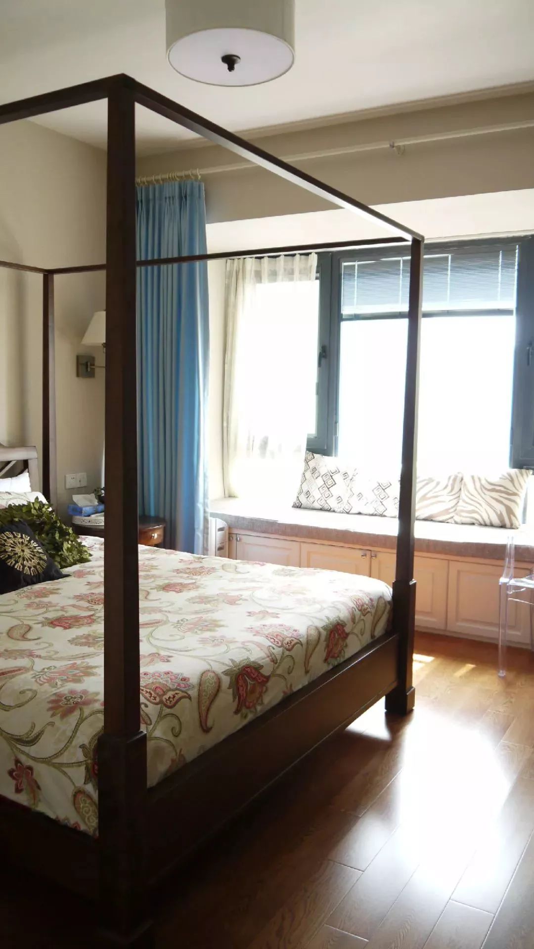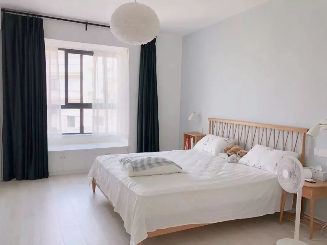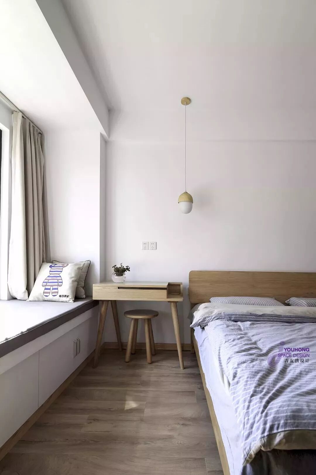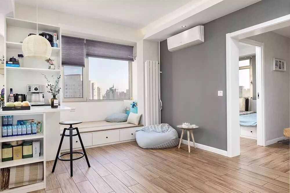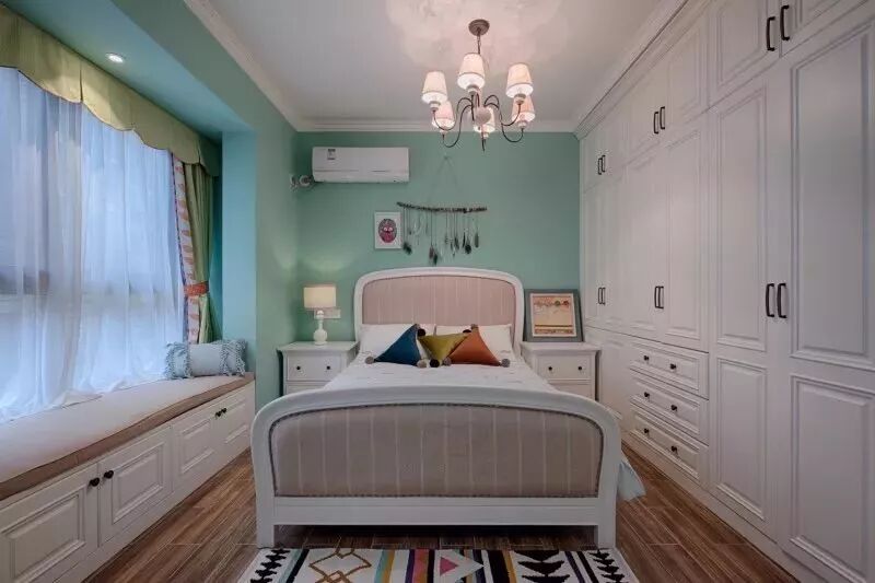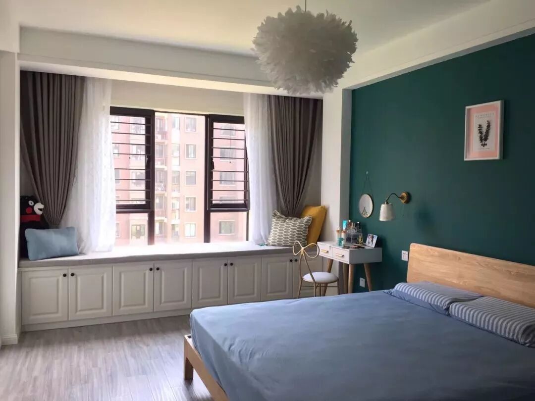 如果是可以砸掉的飘窗,或是后期加装的飘窗,不妨考虑一下把飘窗改成收纳柜,这样可以为卧室增加好几个平方的储物空间,能存放不少换季的衣物或被套,甚至可以在这里存放一些比较大件的行李箱之类的东西。