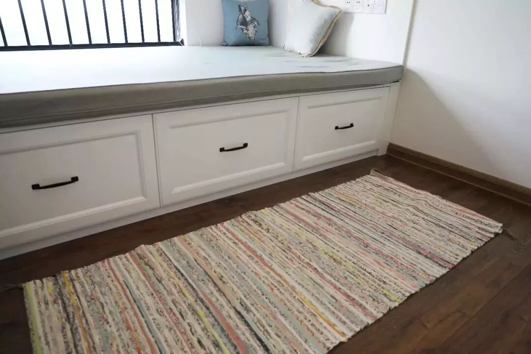 如果是存放一些比较小件的物品,比如内衣内裤或日常用品的话,那么把飘窗下的收纳换成抽屉柜,要用的时候整个收纳柜抽出来,找东西会方便很多。在这里也提醒下各位在做收纳柜的时候要考虑清楚收纳的物品,如果是小件的话建议抽屉式的收纳比较实用。