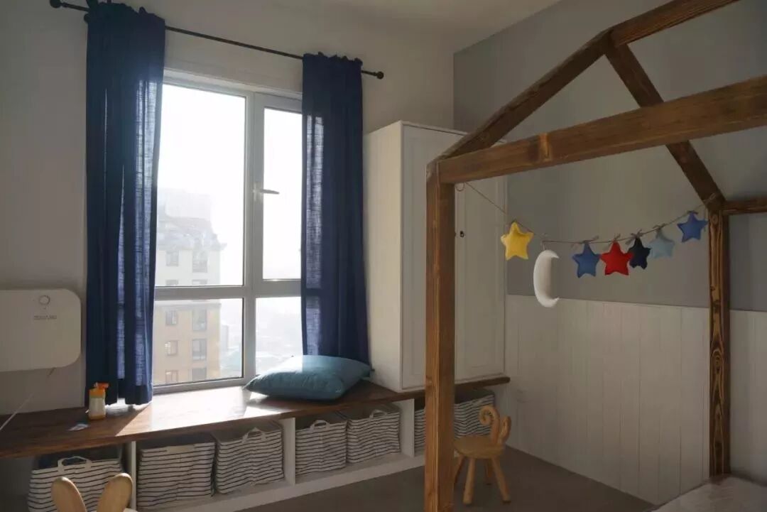 若是收纳些常用的衣服、内衣内裤、或是孩子的玩具之类,也可以考虑做成开放式的收纳飘窗,这样找东西的时候就更加方便,怕灰尘的话可以加上一个储物蓝。