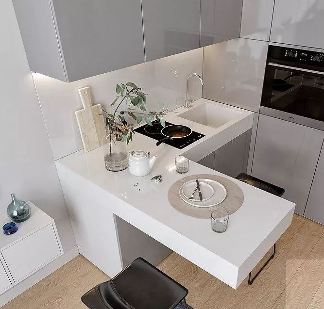 对于很多人来说,拥有一个大大的厨房,大的岛台,上面摆满了五彩的食材,很多精致的器皿,应该是满足对家的想象的终极梦想。想象着自己烹饪着可口的晚餐,餐桌上坐着可爱的孩子和爱你的家人,就连下厨都变成一种享受。但是对于小户型来说,太难实现了,小厨房就连切菜配菜都麻烦,就想草草结束战场。那么,小厨房怎样装修才能实用又好看呢?