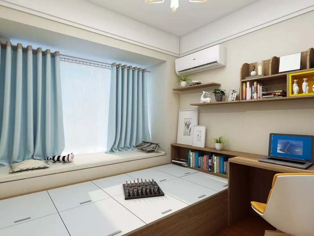 考虑到主人经常会有朋友来做客,因此在书房增设一个超大榻榻米,客人来时可作为会客区域,疲惫时还可作为“客卧”。