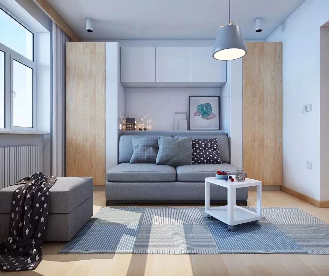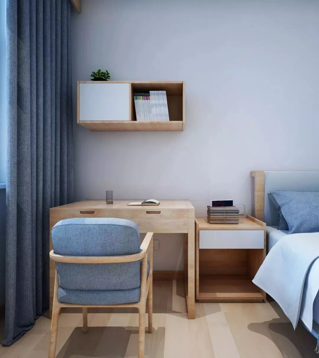设计师把这个空间规划为家庭办公区。一张舒适的沙发床可以满足家人的小憩。
