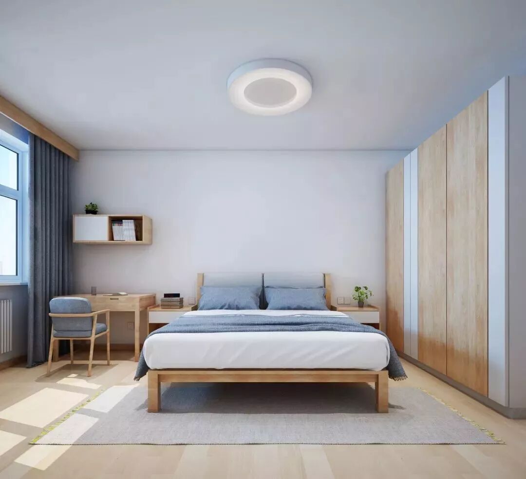 改造后,旧的石膏线被拆除,居室更为简约。柔和的灰、白色调搭配原木色的点缀,还原居室原本的清爽。