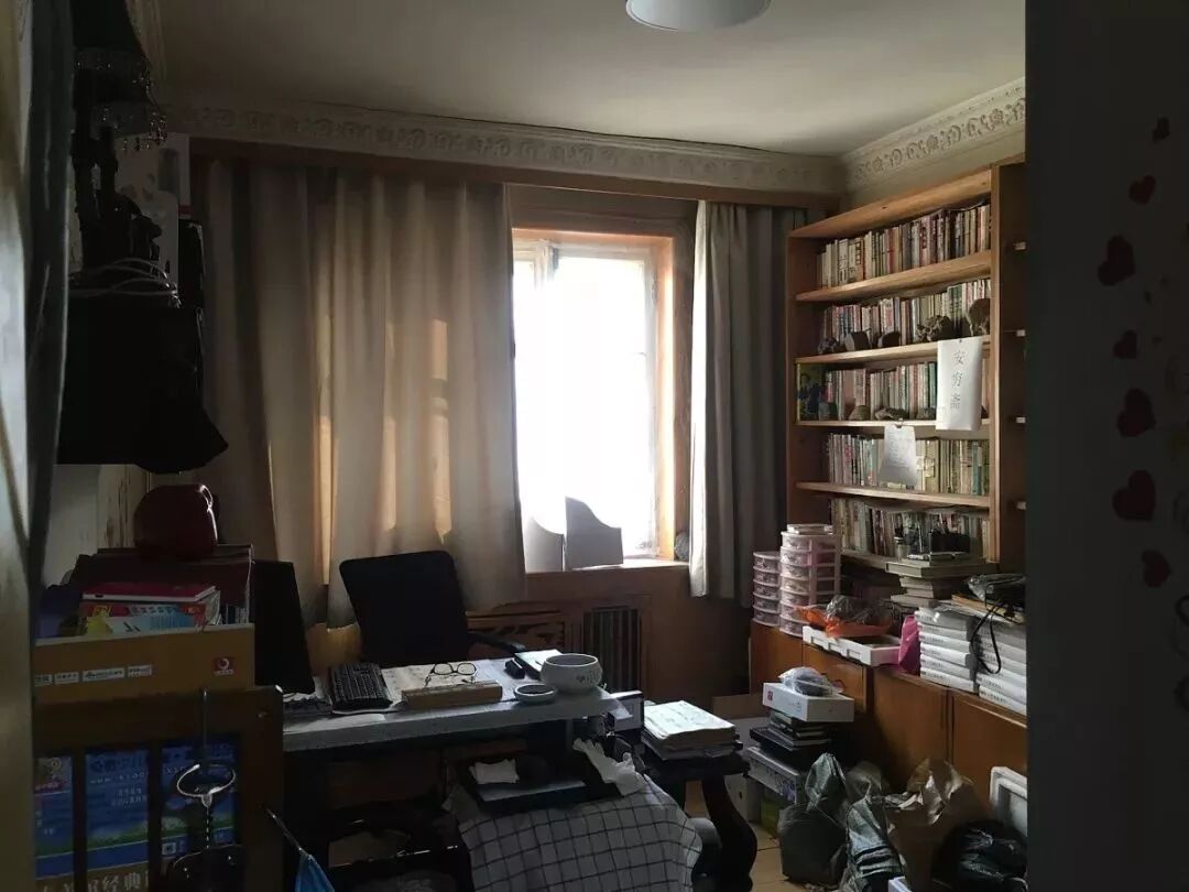 与卧室连接的书房也充满年代感,地面上杂乱的摆放了各类小物件。
