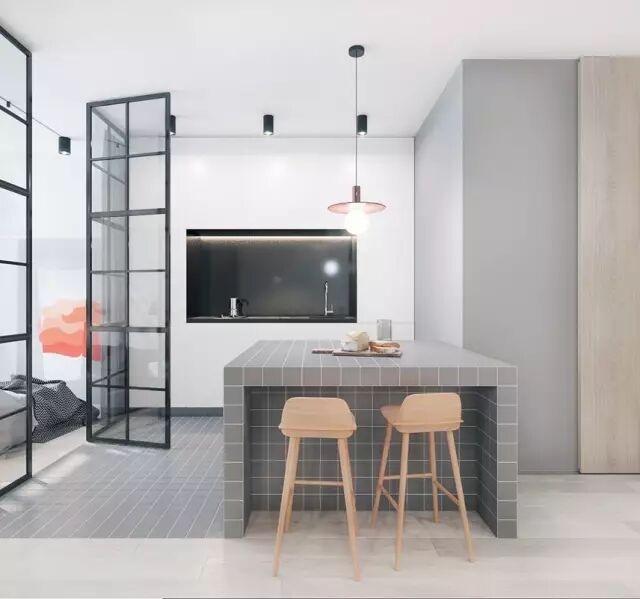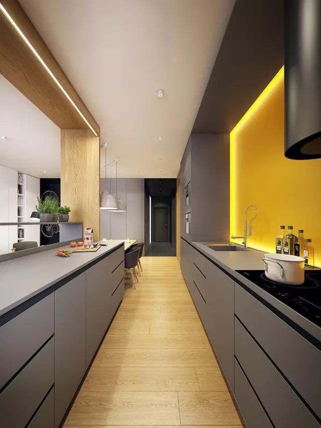 灰色并不总是低调的,适当地为厨房注入鲜艳的色彩,用亮色、黄光等打造全新的视觉,“格调灰”厨房就这样悄然诞生。