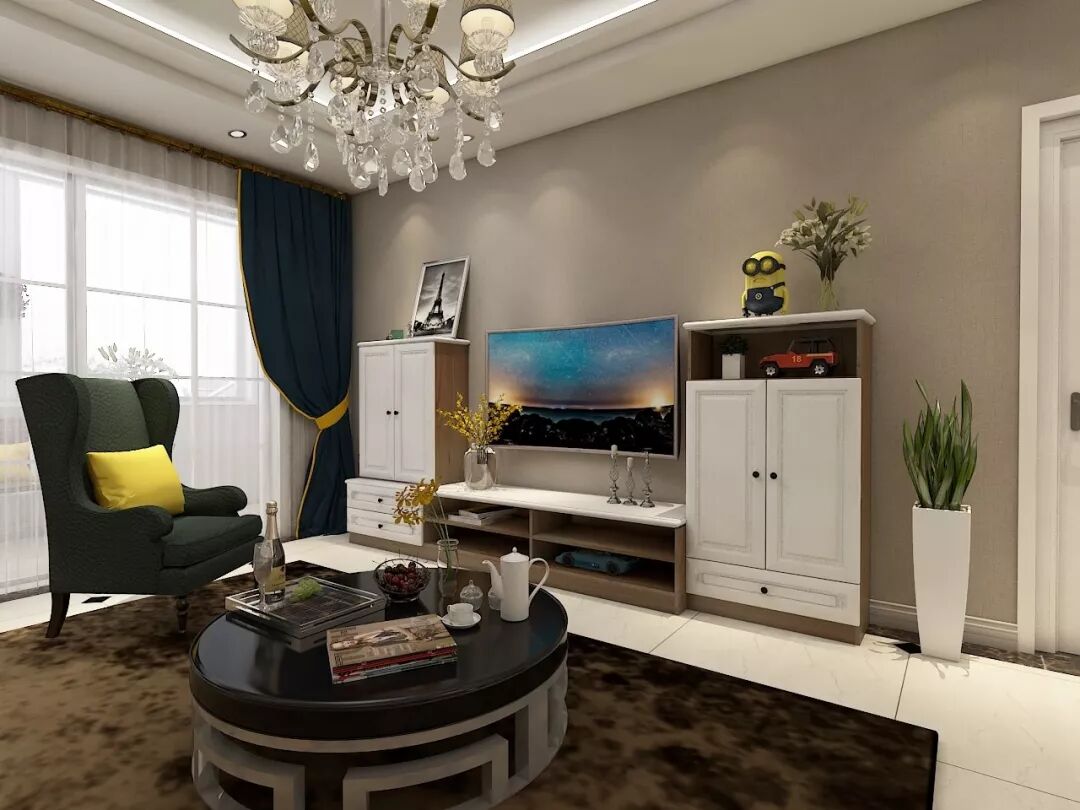 石材电视墙也是比较常用的设计元素。可石材的价格太高,如此一来,瓷砖上墙成了更多人的选择。瓷砖背景墙的光感效果非常好,属于相当简单又不容易搭配出错的方法了。瓷砖背景墙防火、防潮、防噪音,而且方便清洁。只需要简单擦拭,客厅瞬间就崭新了!
