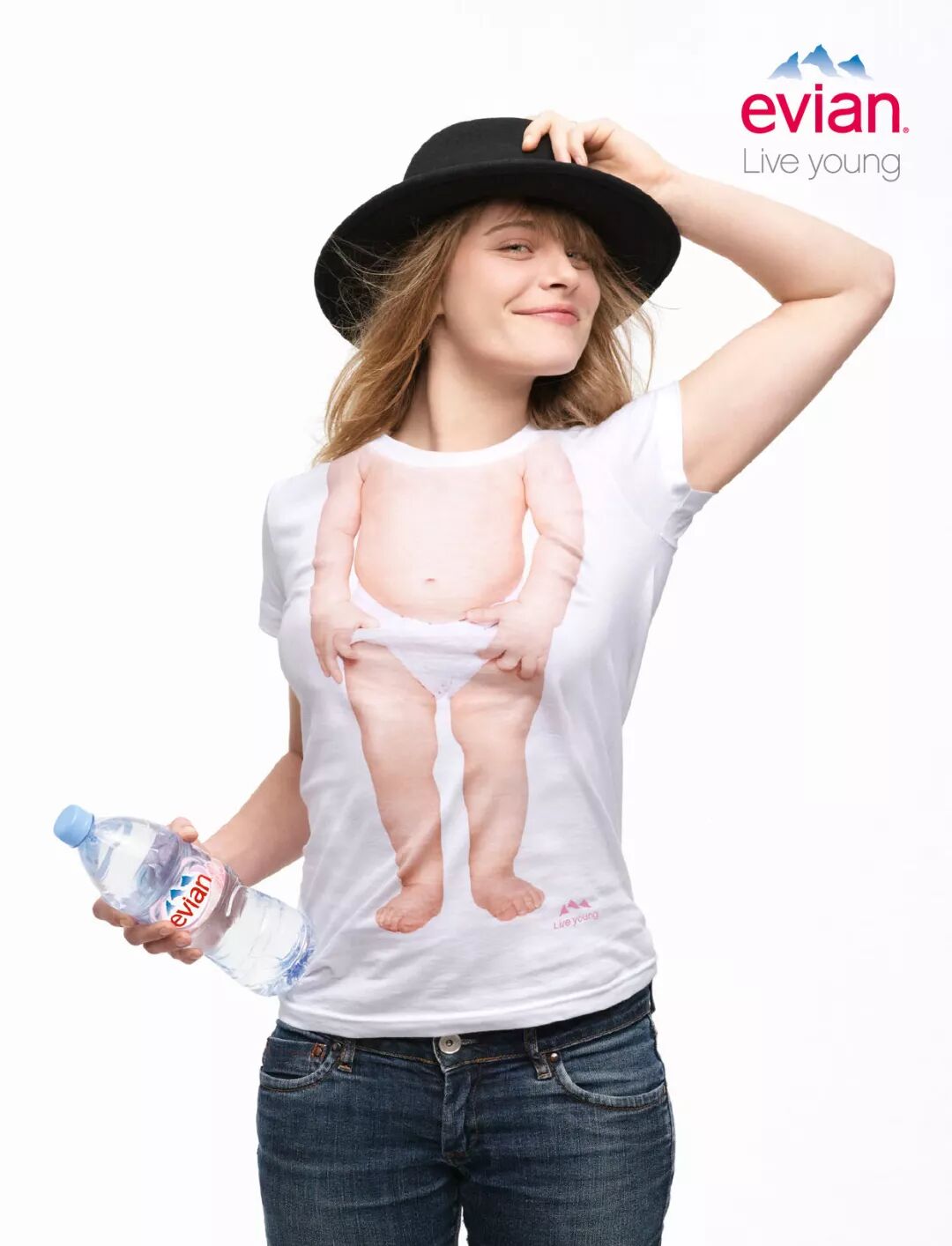其次比如依云,为了强调它的品牌理念live young,依云用baby来展现品牌的活力与童真。