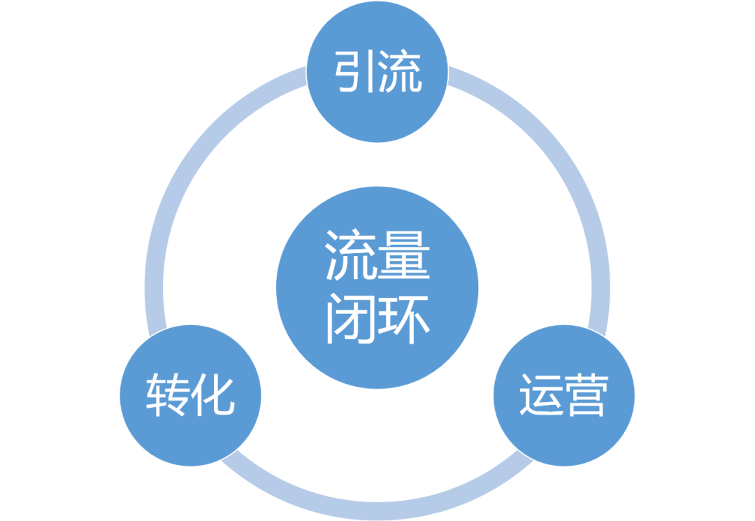 总结下来,流量闭环的模式包括低成本获取流量(引流)、高效率运营流量(运营)、高收益流量变现(转化)。