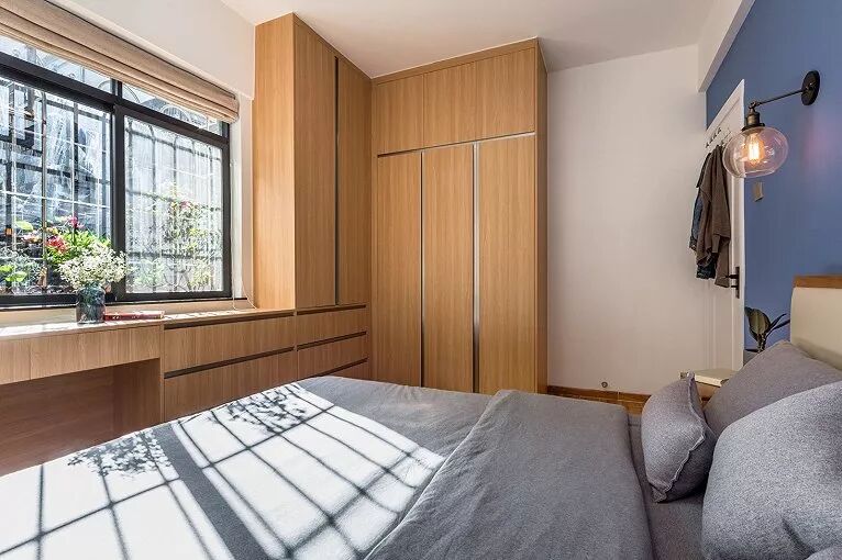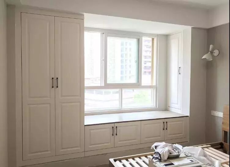 直接用通顶衣柜包裹窗户,打造衣柜式收纳空间。