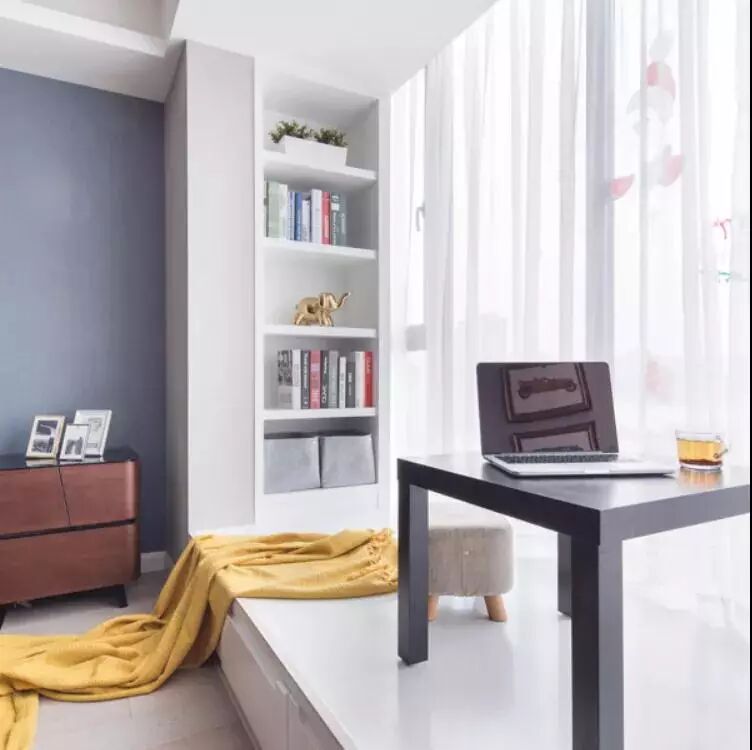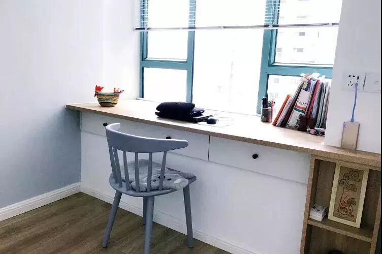 书房只用小角落就可以收拾出来,家里没有的话可以试一试飘窗式书房,在飘窗安装书架和书桌,窗台摆上书桌,整齐实用,采光条件也好!