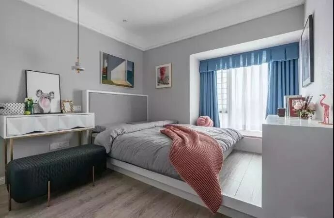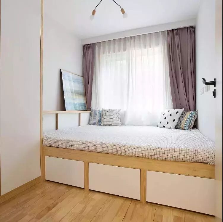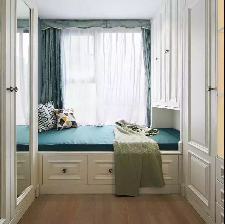 房间收纳不够的情况下可以小改飘窗增设收纳区。在飘窗装上抽屉或柜子,把杂物都藏起来,既不影响整体的美观,也做到能收实用。