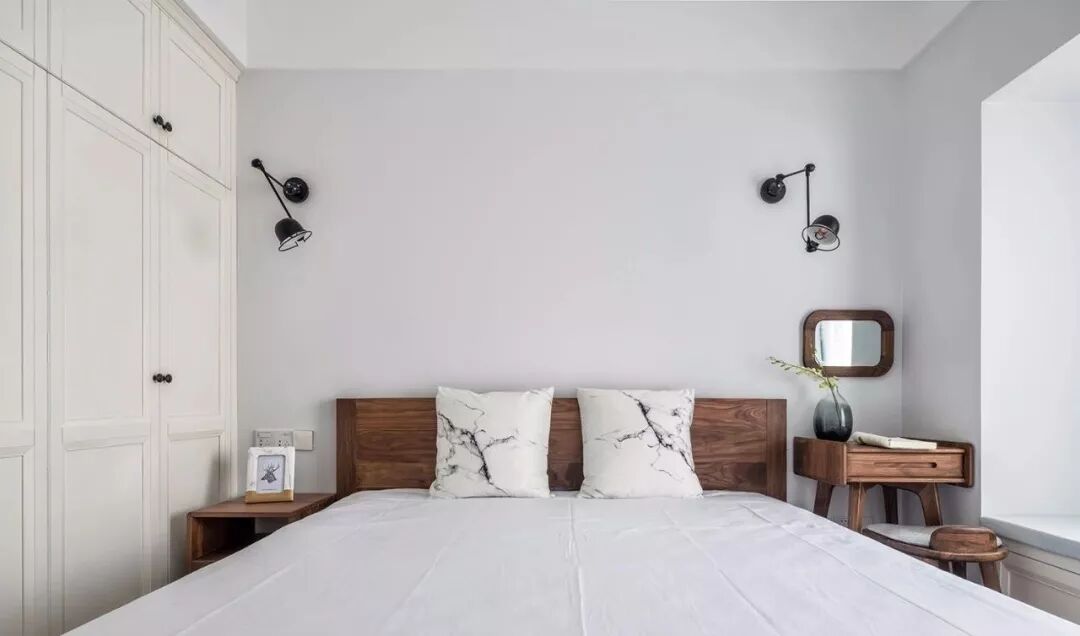 ▲ 次卧,沉稳木调,墨韵摆件,休息区域兼具实用收纳与装饰美观