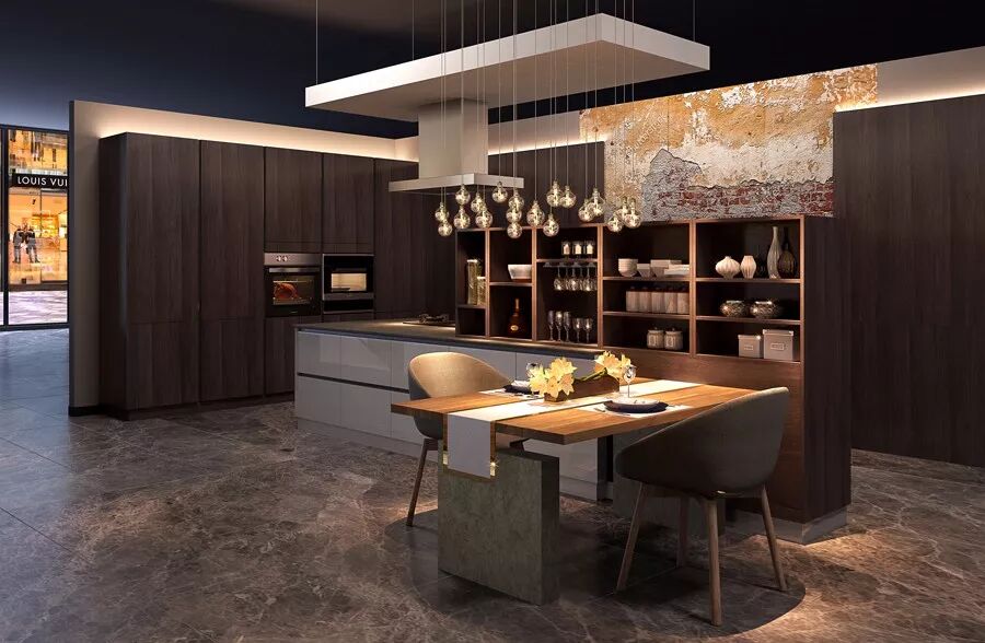 穿插岛台的木质中高柜