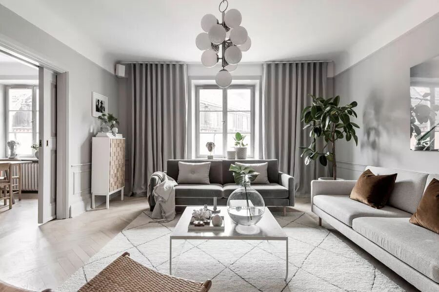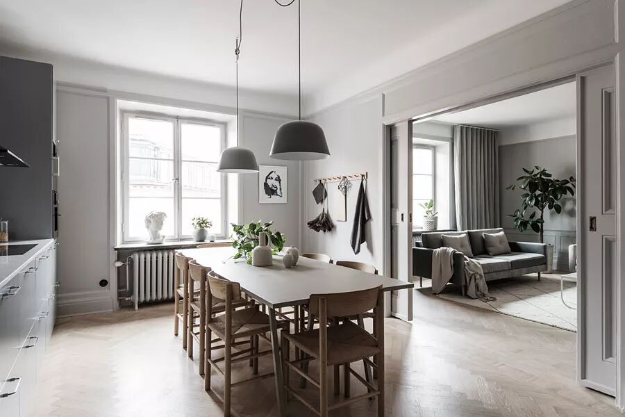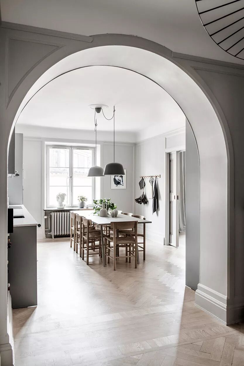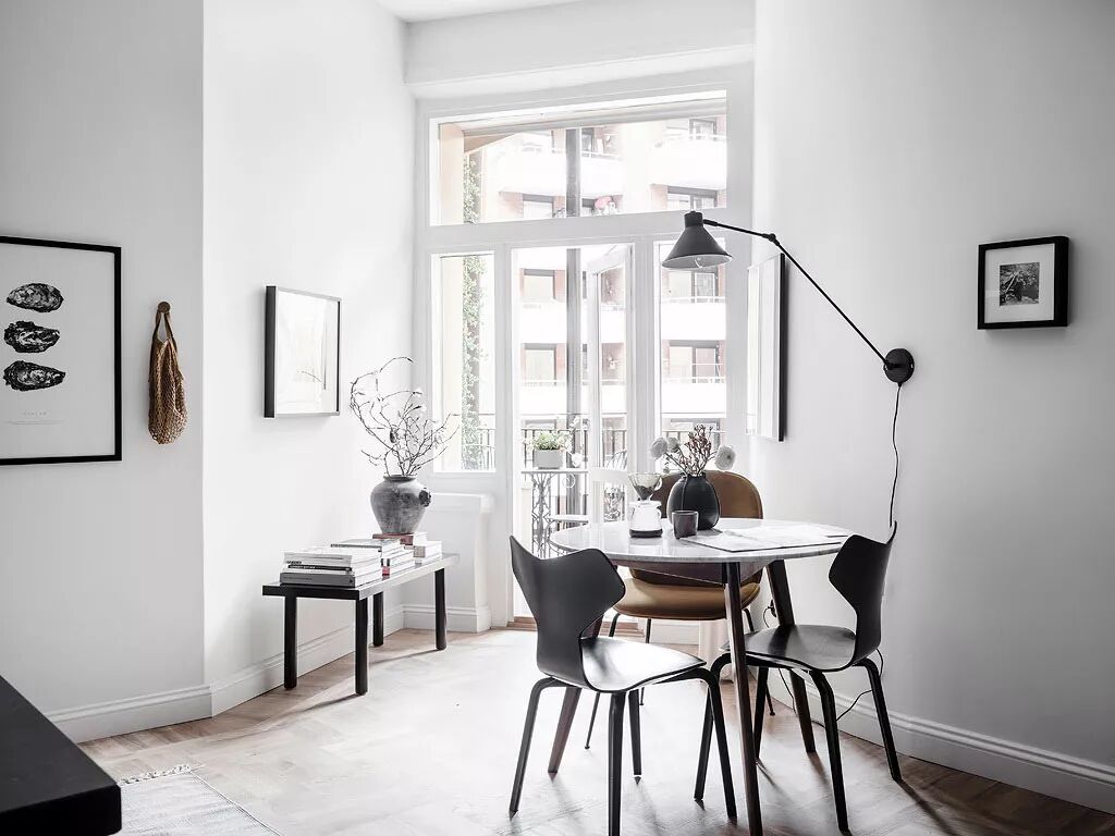 我最近偶然发现了这间光亮的哥德堡公寓,并认为你也可以欢迎这一点,呼吸新鲜空气! 调色板由几种白色调组成,以木材点缀以加热外观以及一些黑色细节将它们组合在一起。