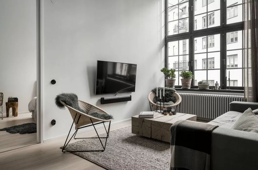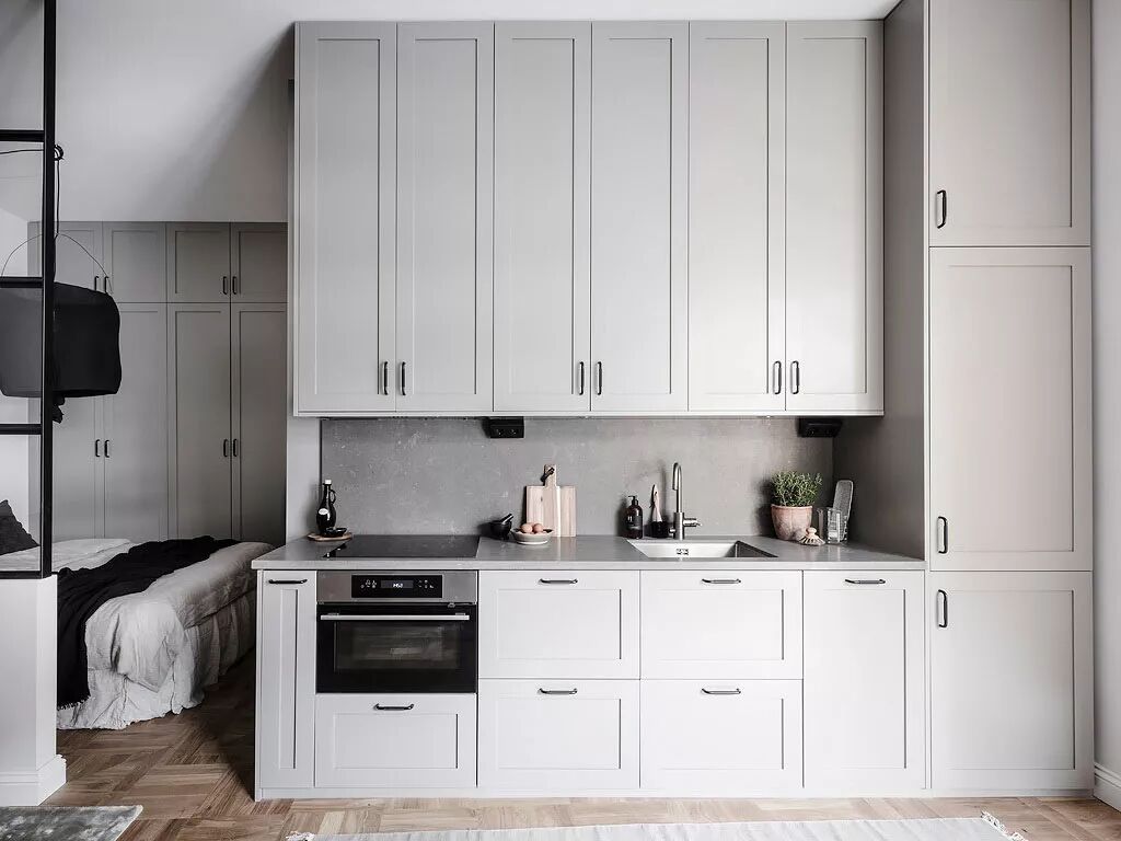 它总共只有33平方米,但功能布局很好。隔断墙为卧室增添了足够的隐私,同时让自然光线进入,这是一种将空间划分为区域的时尚方式,这是装饰小空间时的重要元素。我也喜欢最小的浴室。