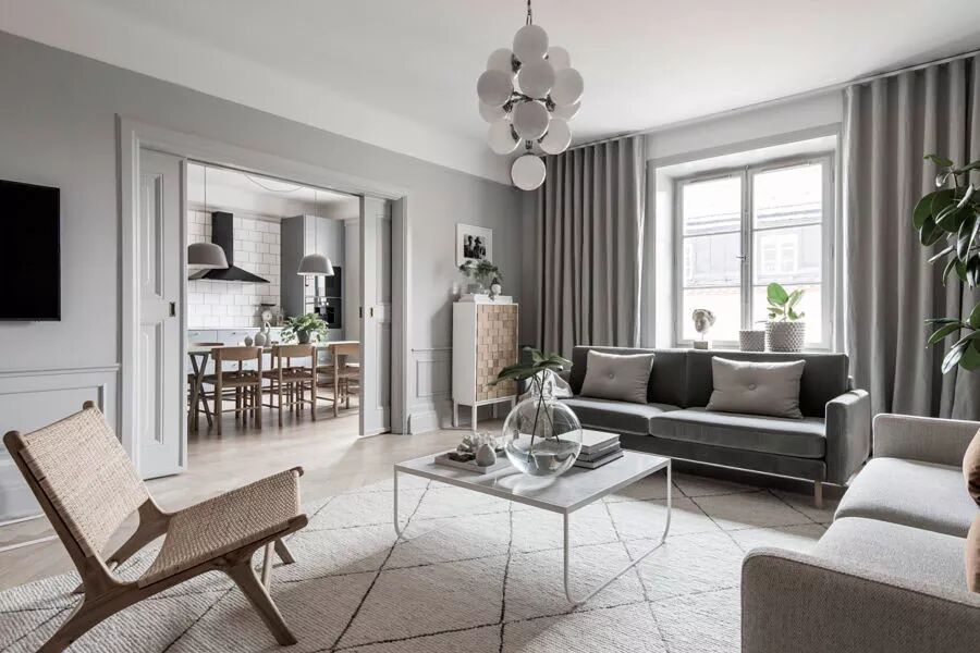 这间可爱的53平方米公寓以其宜居风格引人注目 - 舒适的家具,时尚的配饰,自然的风格和温暖的灰色调。 结果是一个宁静舒适的家庭,永恒的魅力。