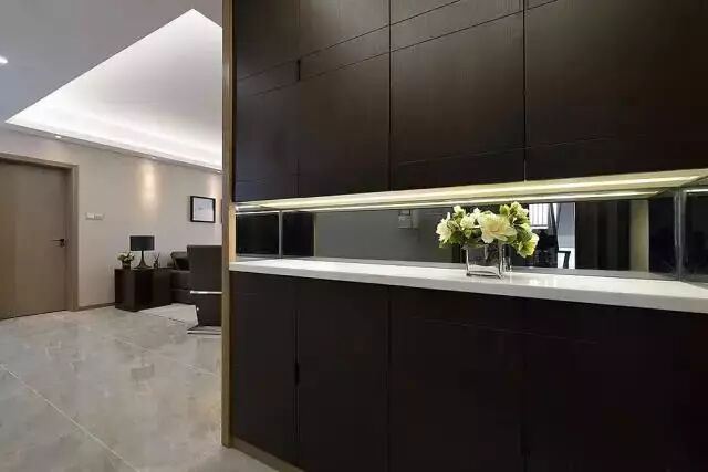 嵌入式鞋柜一般是和进门吊顶结合设计的,不仅美观实用而且可以大大节省室内空间。