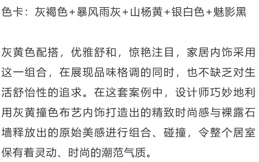 本期为大家带来五组关于灰黄组合应用于家居设计中的唯美案例: