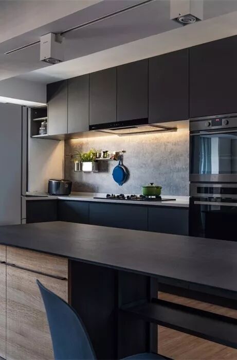 ▲灰色调的厨房,让空间显得轻奢高档。