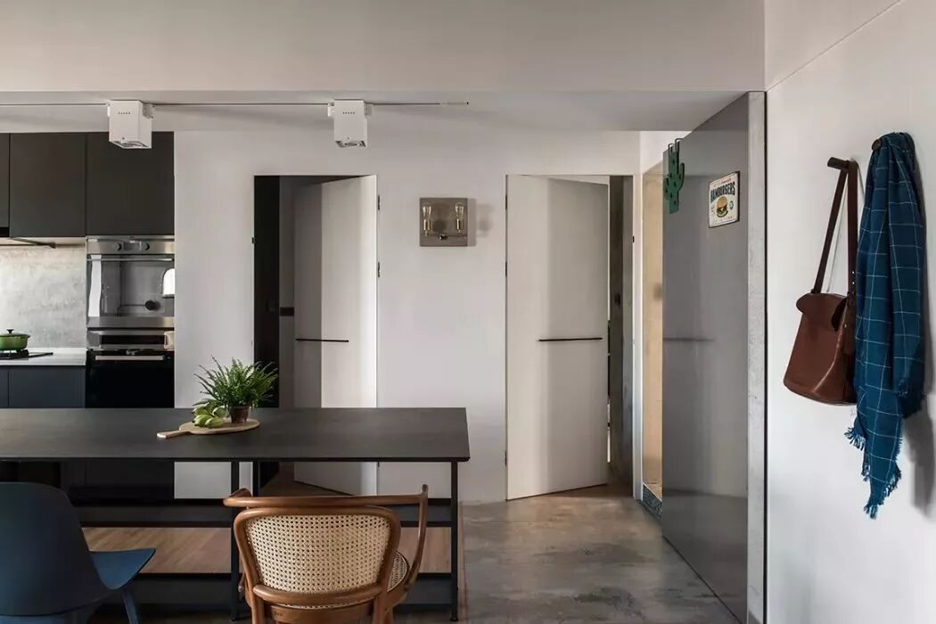 ▲餐厅侧边走廊的墙面的挂钩,也可以方便地挂上包包等随身物品。