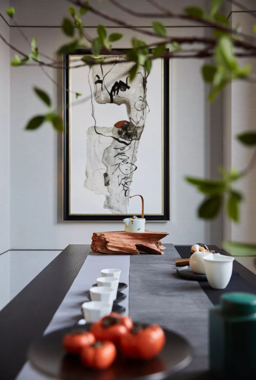 新中式与黑白灰的结合,看似平淡素净、没有亮点,却巧妙地利用留白意蕴和时尚元素造就一种水墨东方的情怀,给人带来无尽的遐想。