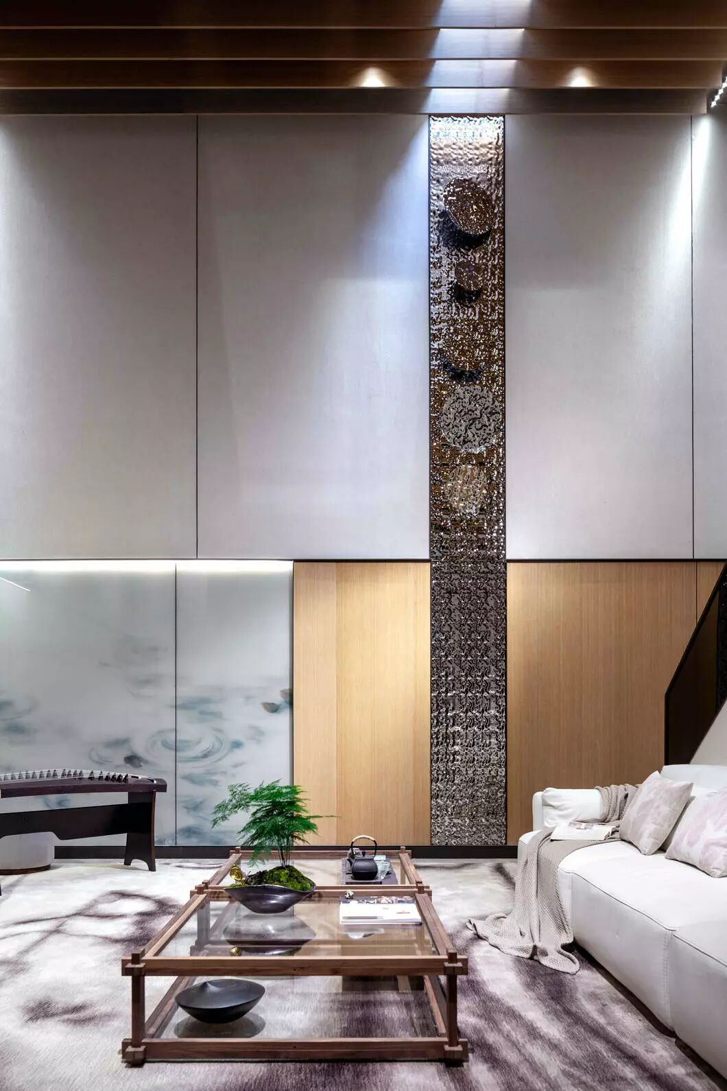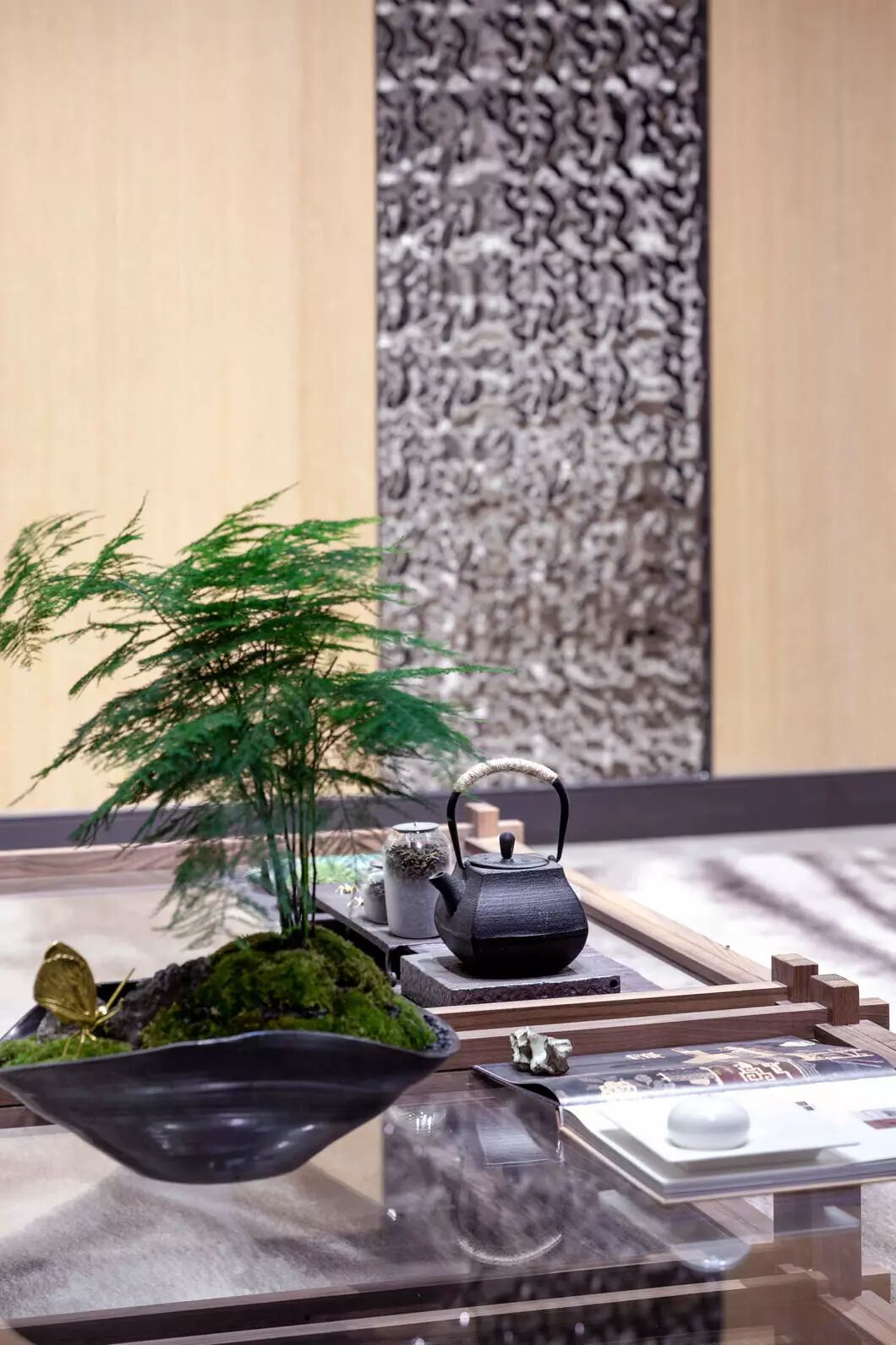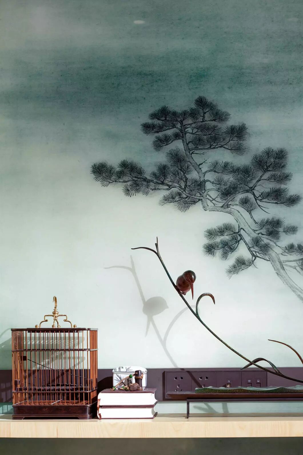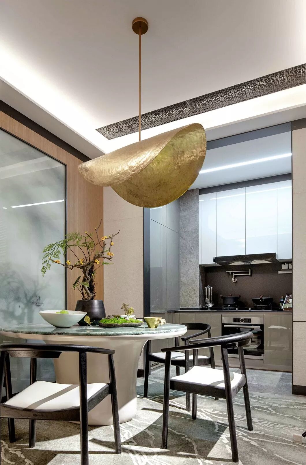 将浅木揉进荼白,再点缀几处翡翠绿,高度和谐的低调里却流露出再三斟酌的精致感。以传统的艺术脉络,通过细节串联了整个视觉空间。