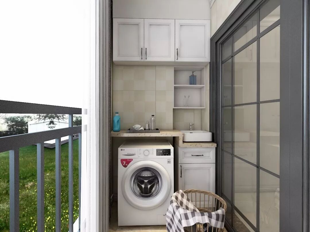 ▲洗衣柜、吊柜、收纳格并存,空间布局合理精致