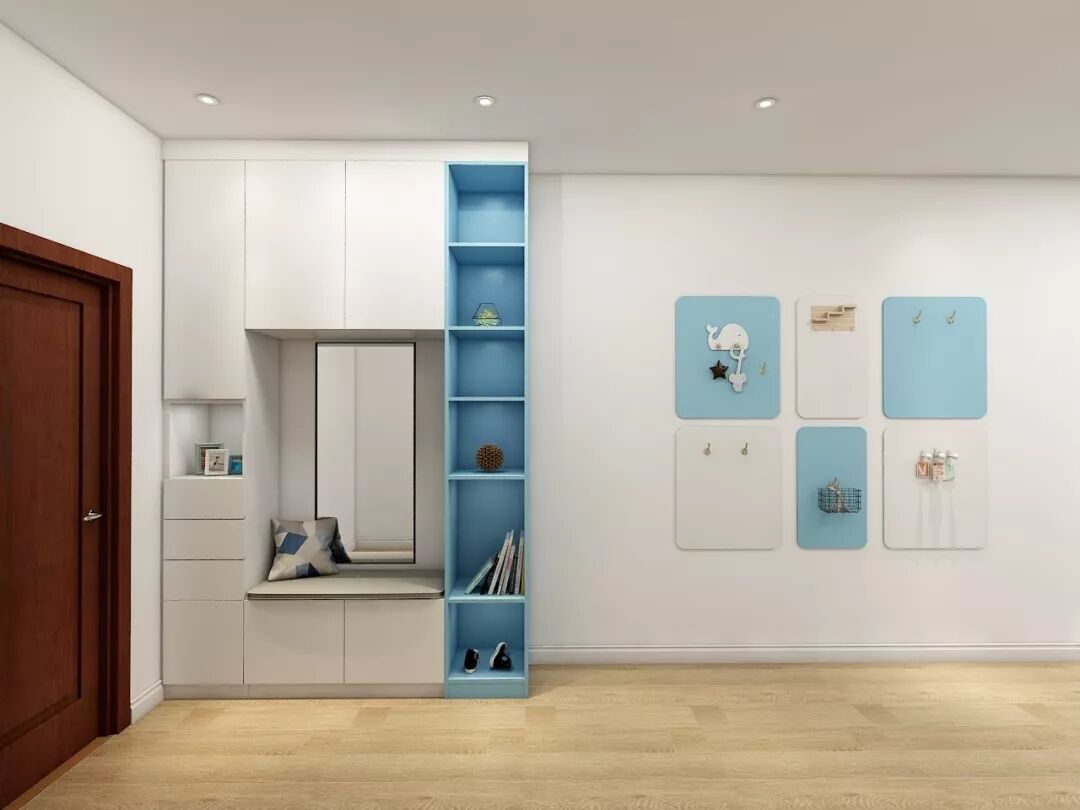 入户柜无需太多复杂的设计,用不同材质、花纹或颜色来划分空间,小小的玄关柜,也能让人眼前一亮。