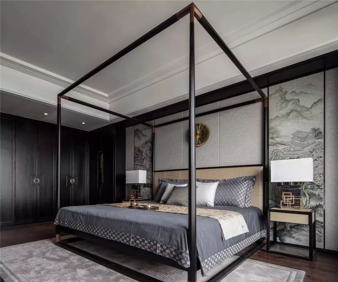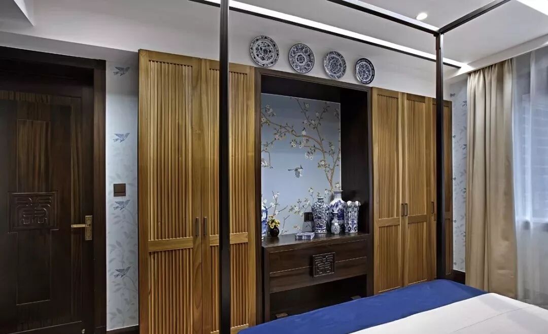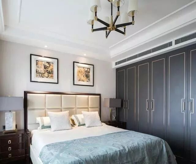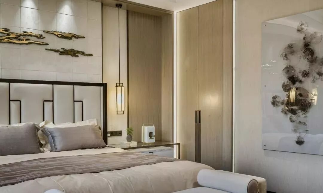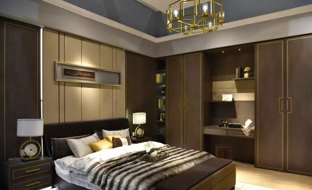 ▲嵌入铜条的新中式门板,让卧室更加轻奢时尚,满足了人们对个性化家居空间的渴望!