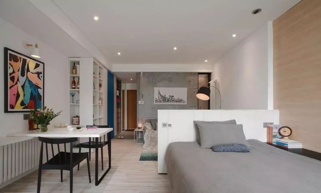 (40平米小户型的客厅拥有:客厅、餐厅、卧室三种功能,又是一个逆天设计的小户型。)