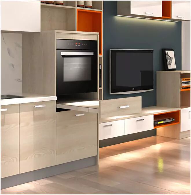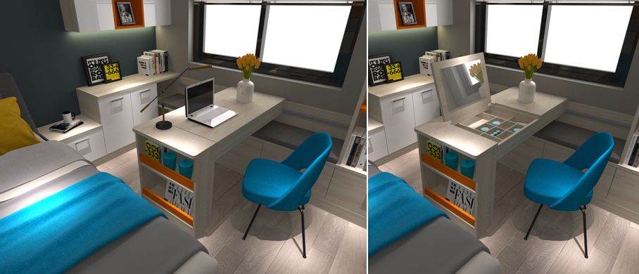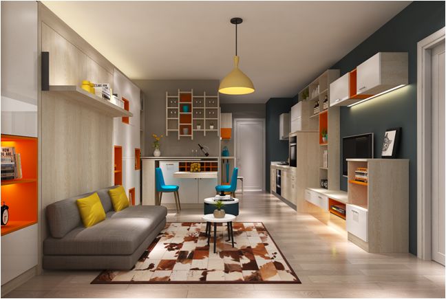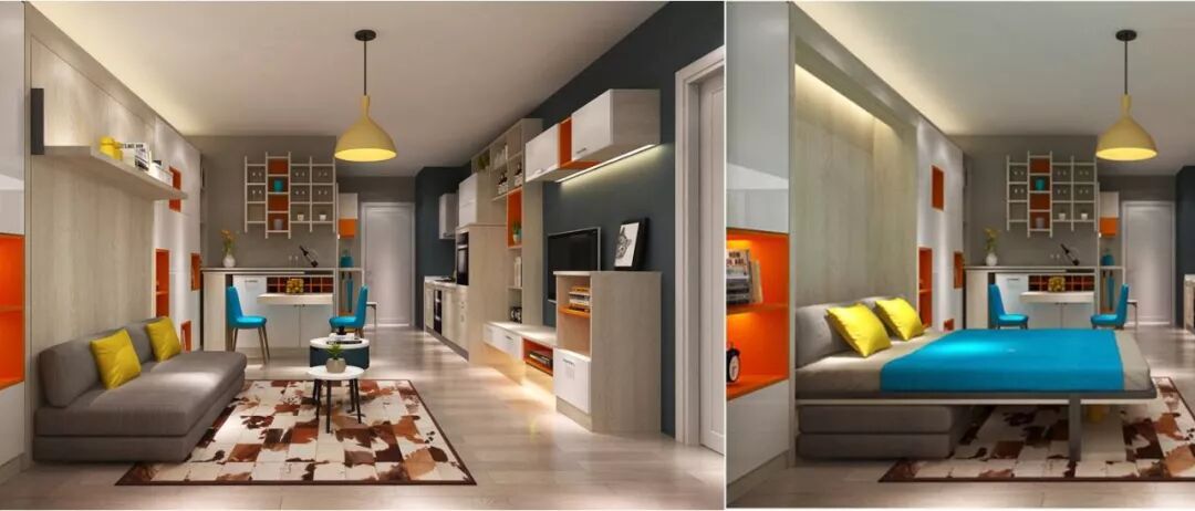以爱马仕橙、白橡木纹和亚克力白作为主打色调,再利用优雅的蓝色与积极的黄色相间点缀,形成强烈的色彩碰撞,时尚却不喧嚣。同时,简约紧凑、自由组合的多功能设计尽显年轻人的激情与创造力。不管是色彩、材质还是使用习惯,都让青春的梦想在碰撞与百变的节奏中,恰到好处地呈现着。