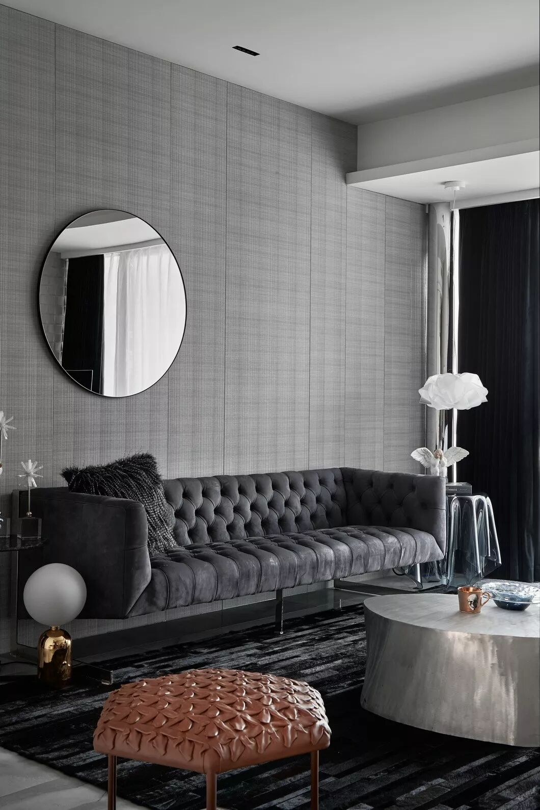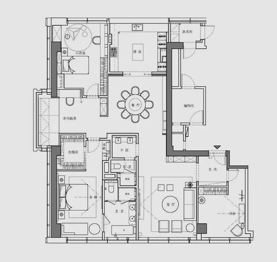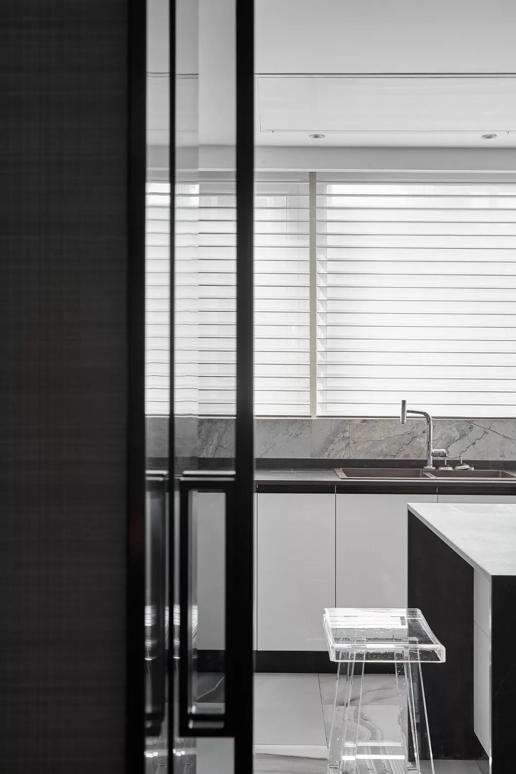 设计的初衷是将空间打造成居住和样板相结合的高端住所,要服务于人,首先要体验于自身,因此一开始便决意加入各种智能系统及进口品牌家居。色调则是以黑白灰定位,并未强调硬性的风格,所有家具软装皆是后期随搭随行,最大程度满足了男女主人所想兼可得的“任性妄为”