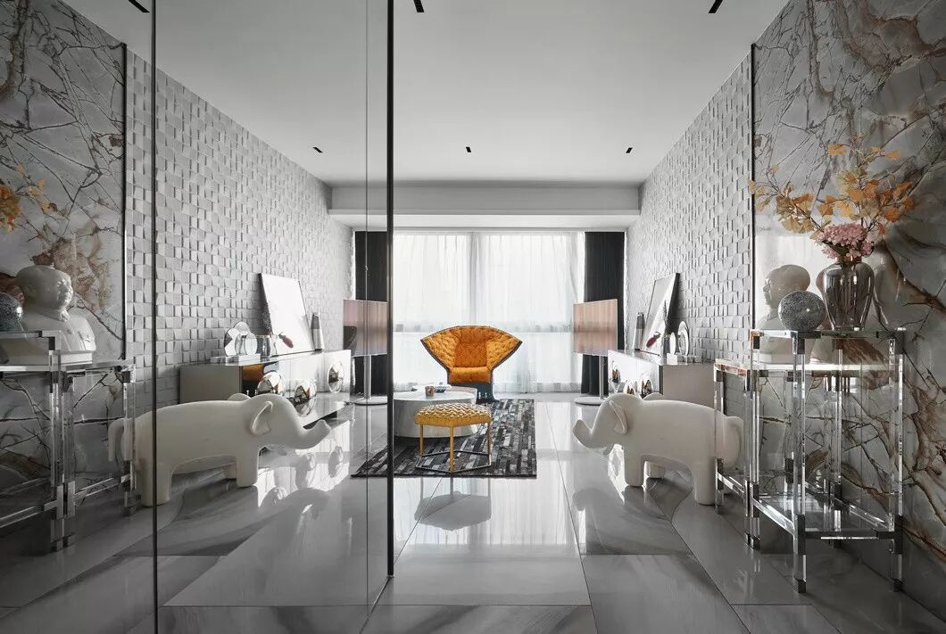 意大利ELITE,TO BE的茶几,诺威斯的沙发,Cattelan italia的边柜,处处彰现着它们独有的气质,为原本素颜的空间添上了一抹精致的妆容。