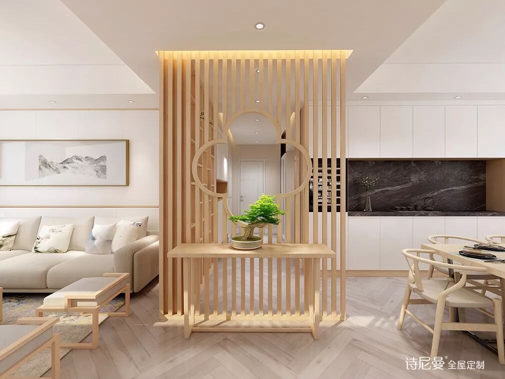 门与厅之间用了传统的屏风作为隔断。