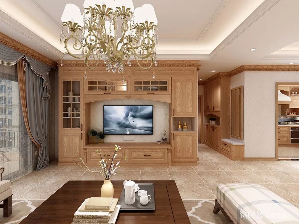 欧式风格的关键是家具和软装,像下面这个案例,全屋唐顿庄园柜体将空间打造的仿佛中世纪豪宅。