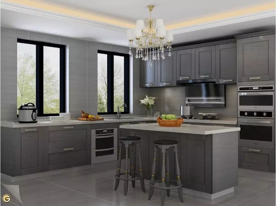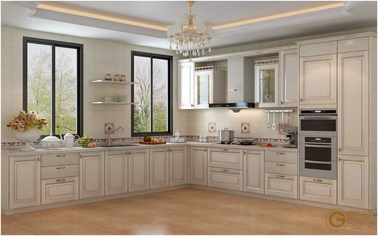 大户型的L型厨房,无论是封闭式还是开放式,都能很好的将厨房物件完美收纳,嵌入式的电器巧妙的融入厨柜间,就两个字:完美!