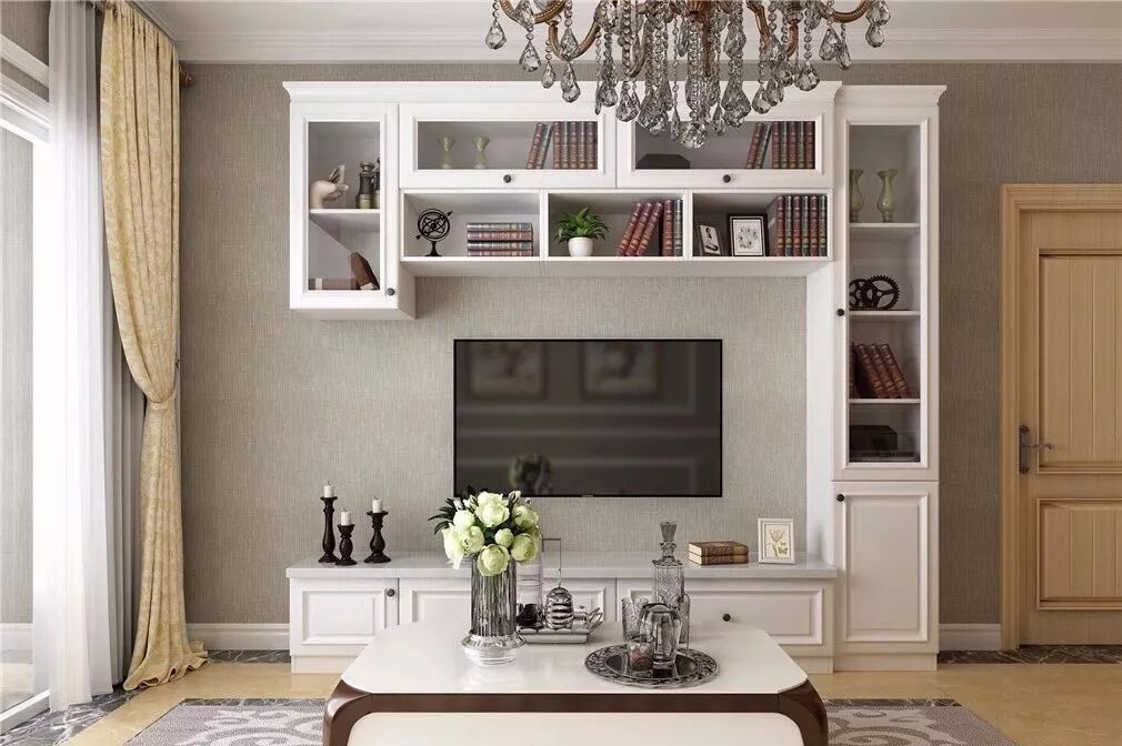半包围式的电视柜收纳组合柜,可以收拾好一切杂物。