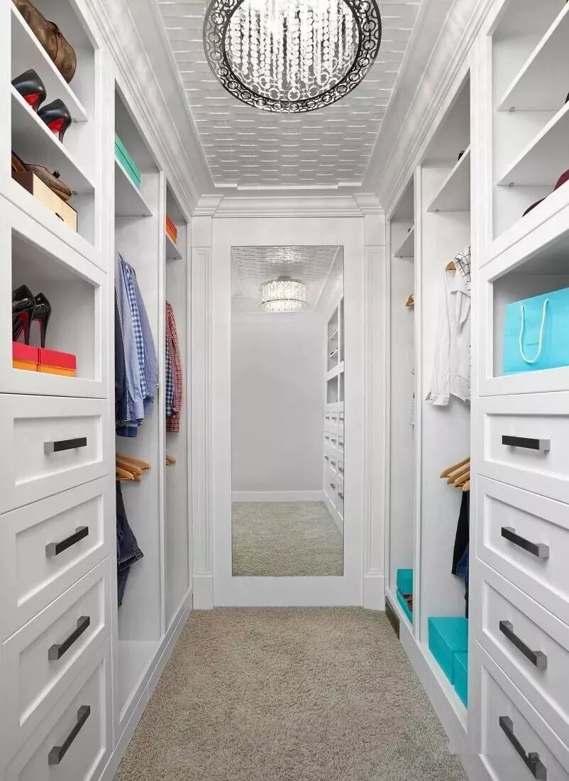 如果家里有一个单独的空房间或空间(比如:储物室),那么完全可以利用起来做一个单独的步入式衣帽间。换季衣物存放、试衣、化妆都可以在这里进行。