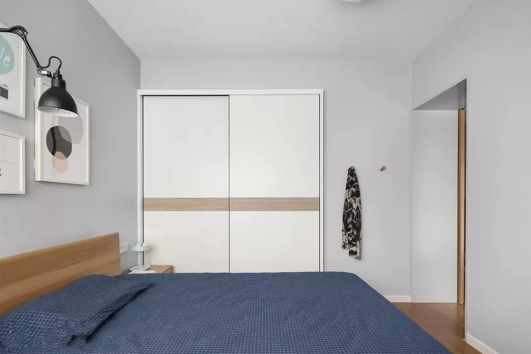 避免选择百叶门之类容易进尘的衣柜门,现在衣柜选择多样,可以根据室内风格搭配不同的柜门,也能制造出其不意的视觉焦点。另外,选择推拉门还可以减少开门带来的阻碍。
