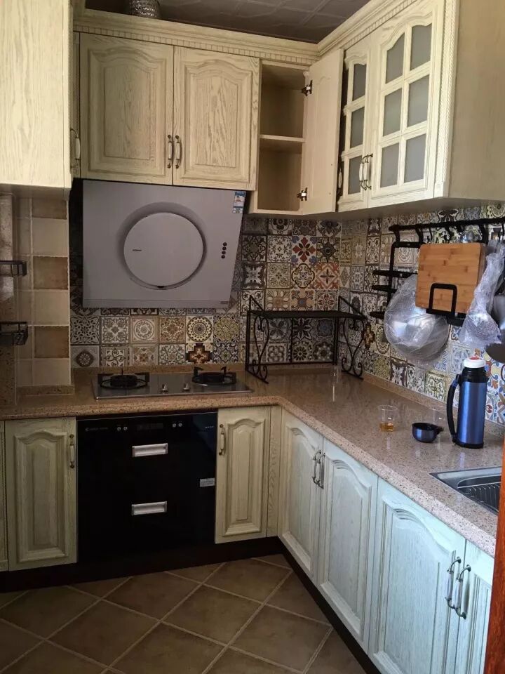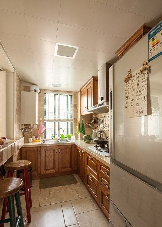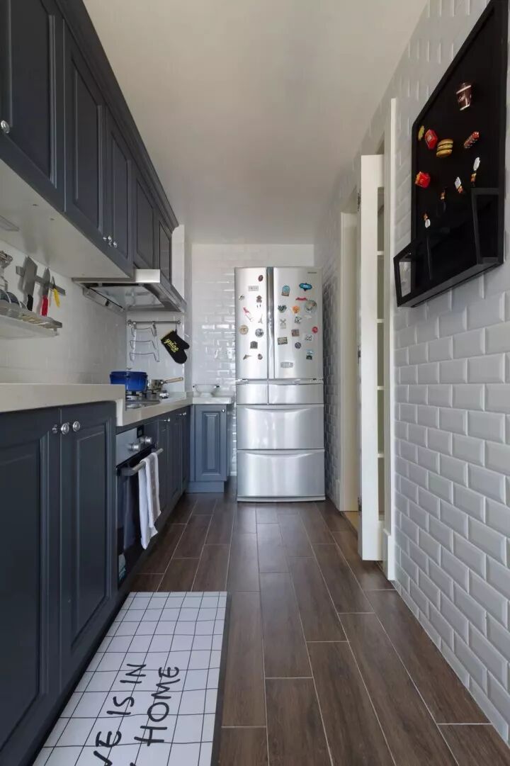 现代美式因为年轻而又优雅高档,最近可以说是个比较火的风格,因此这种风格的厨房也比较常见;通常都以带纹理图案的橱柜面板为主,颜色有白色、蓝色、复古绿等,常见以白色为主;