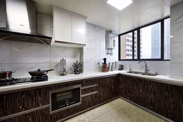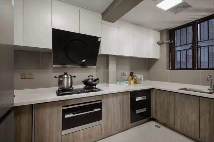 现代简约风的厨房,橱柜一般可以有亮白色、木色等简约舒适的面板,整体效果相对比较现代大方;