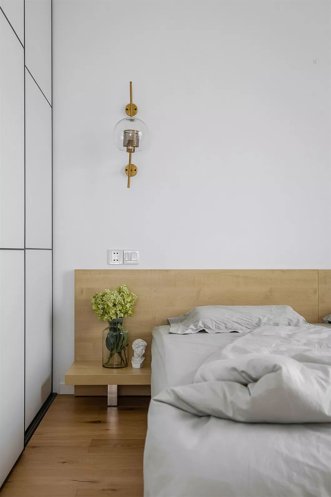 主卧与次卧同时打开房门形成南北通风,延伸的实木地板从中柔化了空间界限